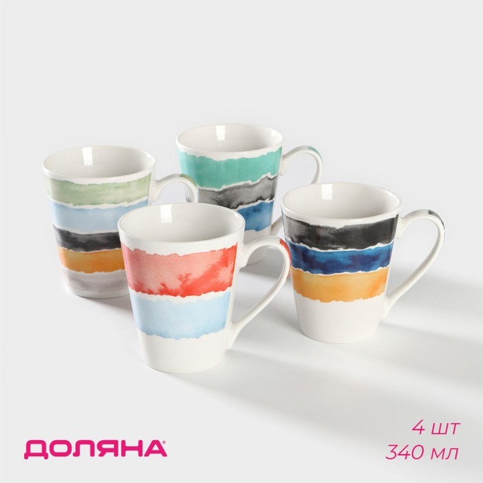 Набор кружек Доляна «Цветной дым», 4 предмета: 340 мл, фарфорВопросы по товару