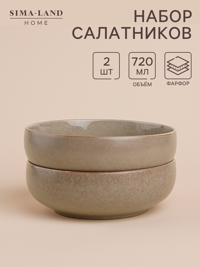 Салатники SL Home «Мольвено», 720 мл, d=16.5 см, фарфор, набор 2 шт., зелёныеВопросы по товару