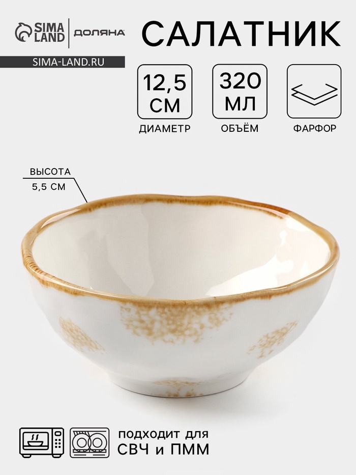 Салатник Доляна Organic Gold, 320 мл, d=12.5 см, фарфор, белыйВопросы по товару