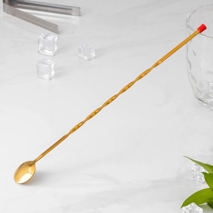Ложка барная с мадлером из нержавеющей стали, длина 33.5 см, цвет золотойВопросы по товару