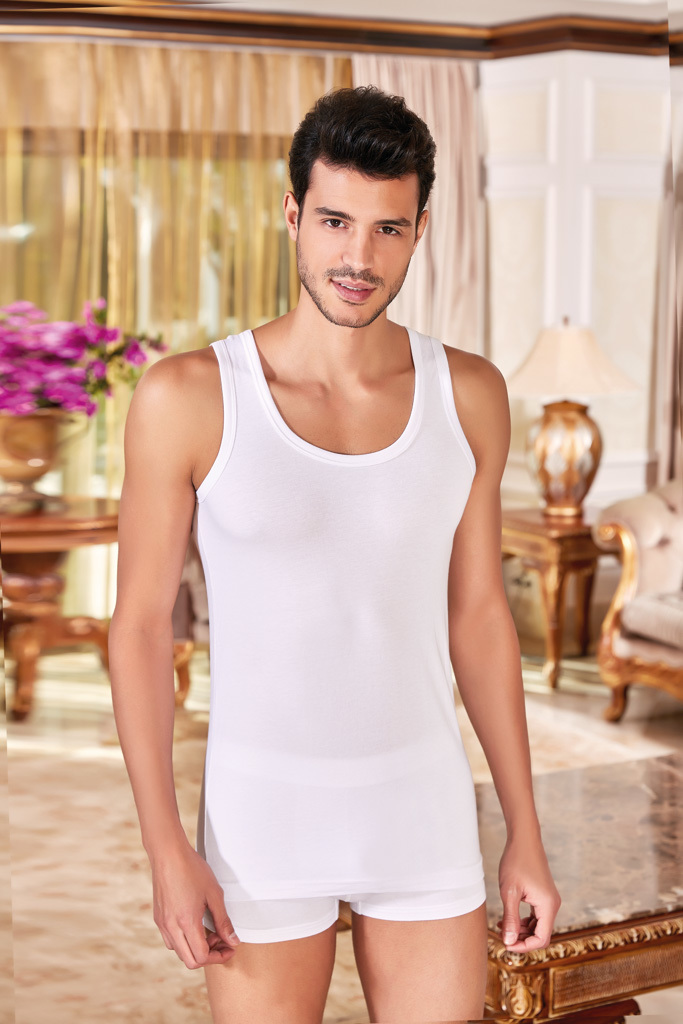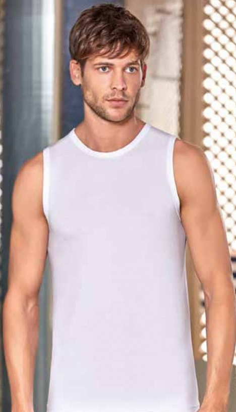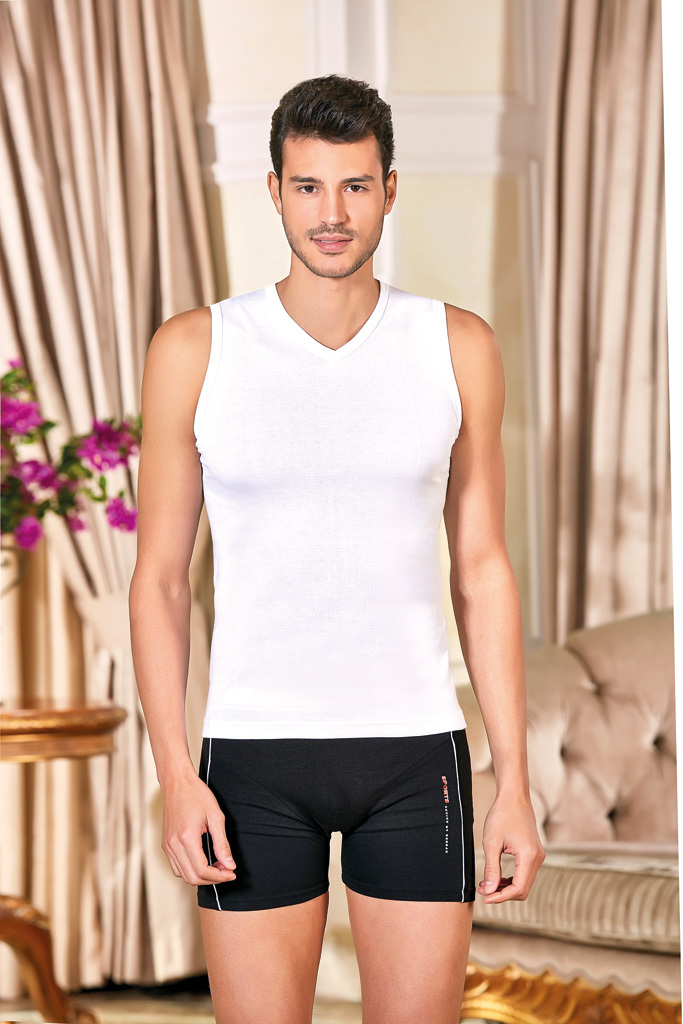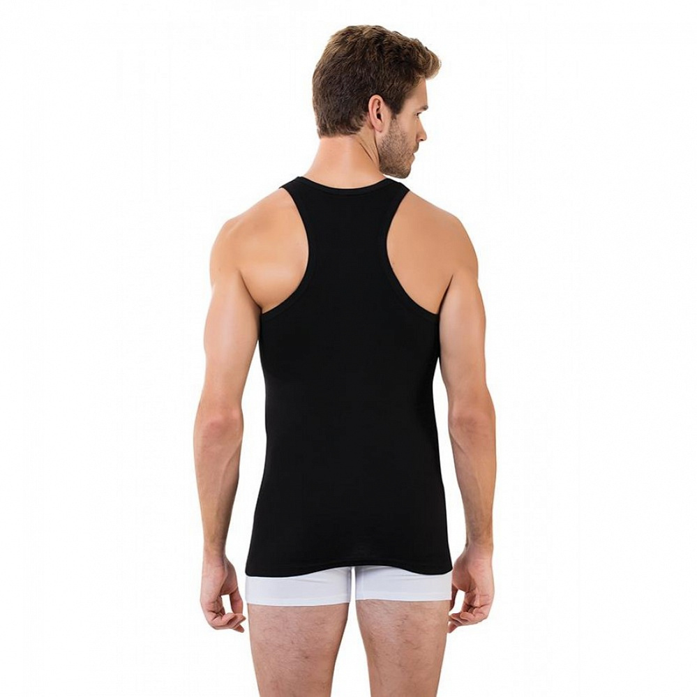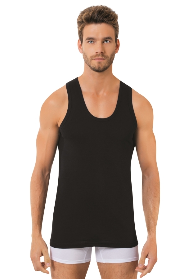 Мужская майка Berrak на широких лямках. Слегка приталенная. Спина борцовка. Изделие изготовлено из 100% хлопка рибана. Мужская классическая майка на широких лямках, без боковых швов представляет собой... Показать описание простую и элегантную одежду, которая может использоваться как нижнее белье или как верхний слой в зависимости от стиля и предпочтений владельца.. Майки без боковых швов часто предпочитаются теми, кто ценит минимализм и удобство в одежде