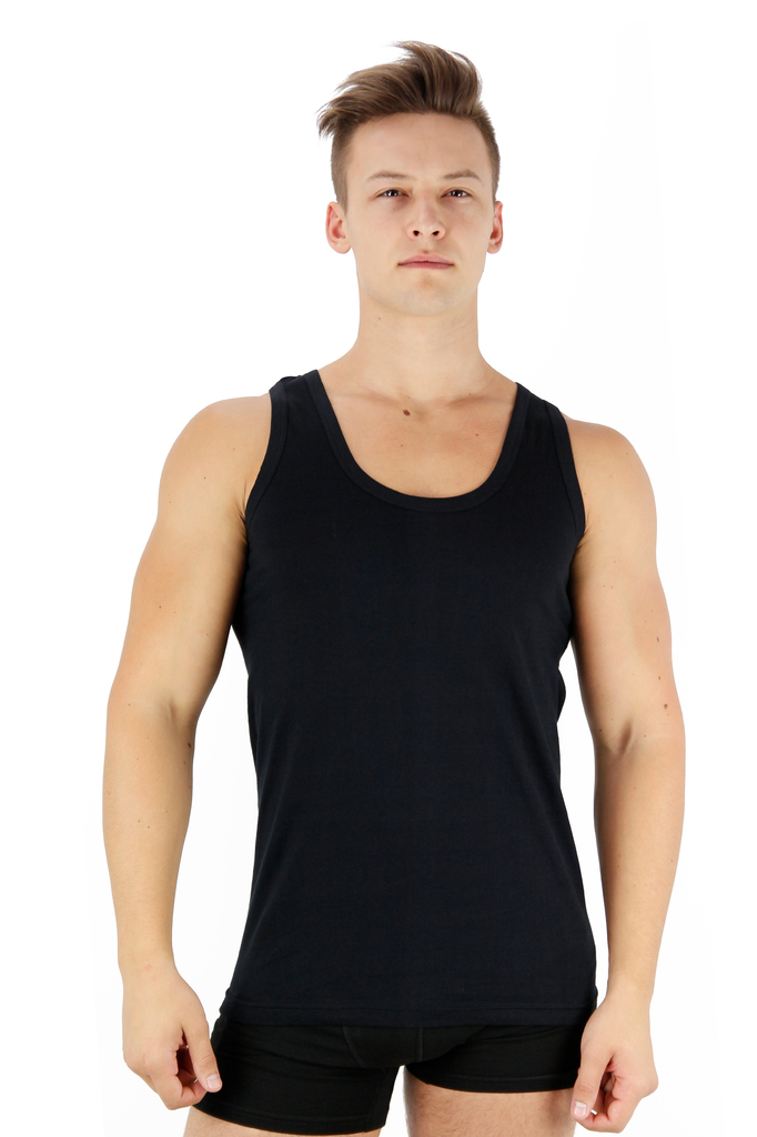 Мужская майка Berrak черного цвета на широких лямках. Слегка приталенная. Спина - неклассическая борцовка, без боковых швов представляет собой простую и элегантную одежду, которая может использоваться... Показать описание как нижнее белье или как верхний слой в зависимости от стиля и предпочтений владельца. Майка изготовлена из 100% хлопка, что делает ее долговечной и комфортной при носке. Она имеет облегающий крой, который подчеркивает фигуру. Майки без боковых швов часто предпочитаются теми, кто ценит минимализм и удобство в одежде