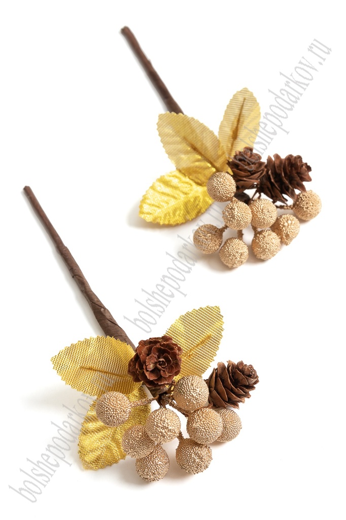 Веточка декоративных ягод с шишками 20 см (12 шт) SF-2332, золото