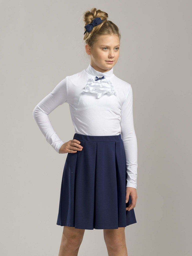 Состав: 93%хлопок 7%эластанОписание: Джемпер для девочек. Новая модель джемпера, которая подходит как для повседневной носки, так и для торжественных школьных случаев. Украшением модели является жабо,... Показать описание выполненное из четырех рядов рюш из основного материала. Водолазка в сером и синем цвете самодостаточна с любым низом, а белая — прекрасно выглядит с жилетом.