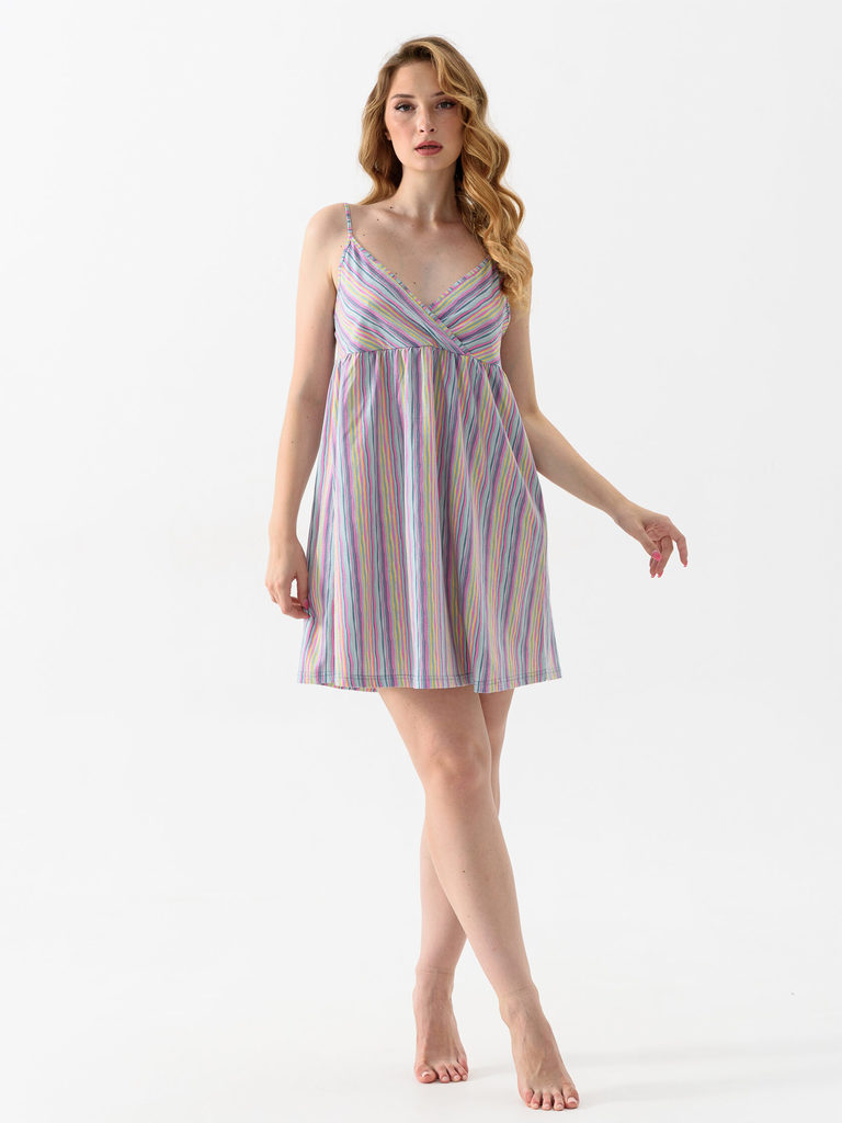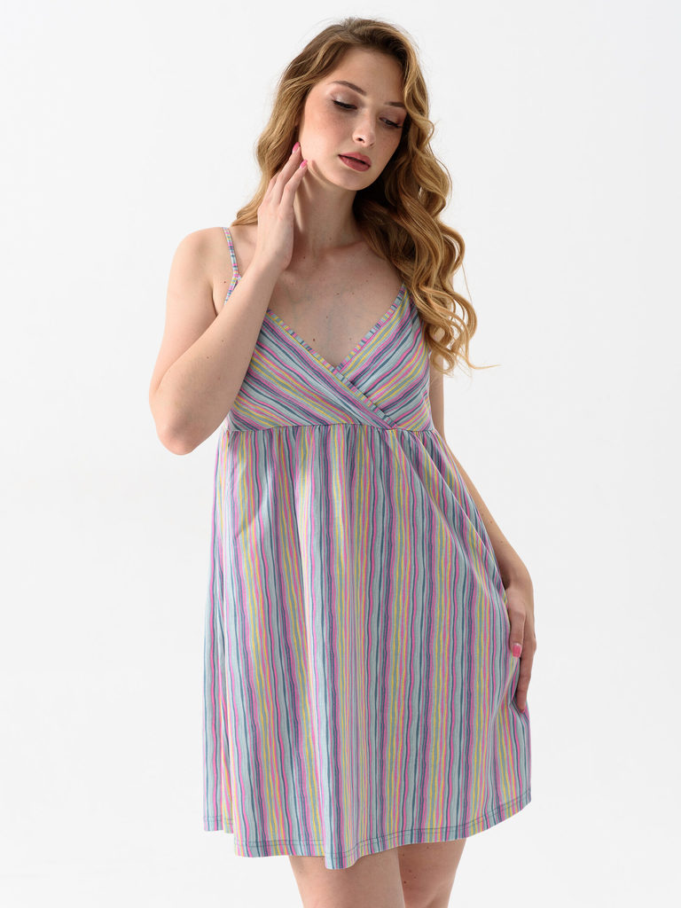 Сорочка из хлопчатобумажного трикотажного полотна. Горловина и проймы обработаны окантовкой из основного полотна. Бретели сорочки выполнены из окантовки. Состав: 100% Хлопок Цвет: розовый, голубой