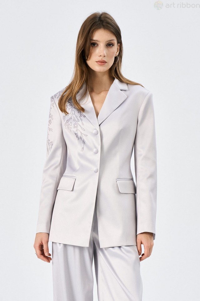MAGNUS. Возможные размеры: 44-46-48-50-52. Жакет прямого силуэта, из плотного атласа, с вытачками на переде и прорезными карманами. Спинка со средним швом и шлицей. Рукав двухшовный, втачной и длинный... Показать описание. Воротник пиджачного типа. Изделие на подкладке. Возможно отличие фотографии по оттенку, связанное с разной цветопередачей монитора. Состав ткани:Вискоза: 60%, Полиэстер: 27%, Шелк: 13%. Подробное описание: https://artribbon.ru/m1089g-zhaket-zhenskij.html