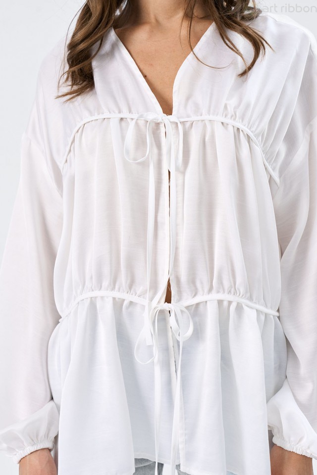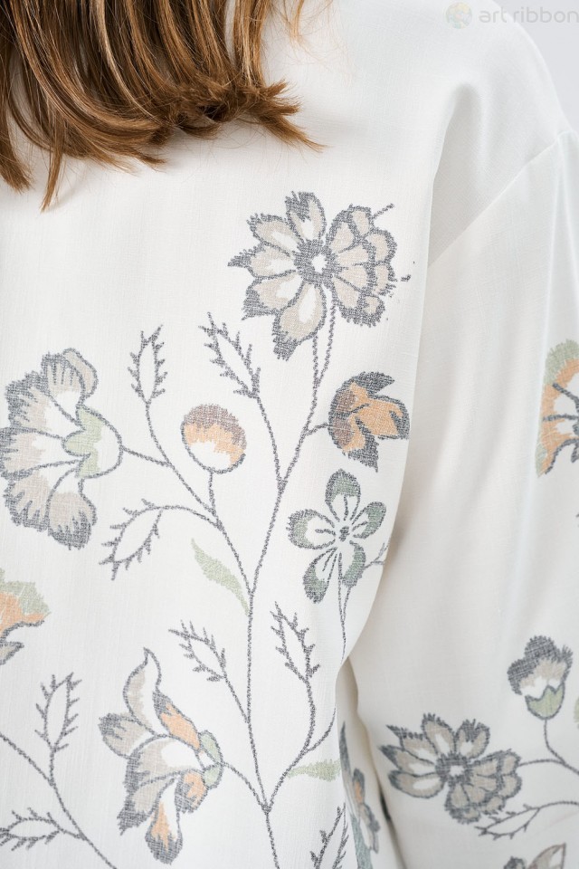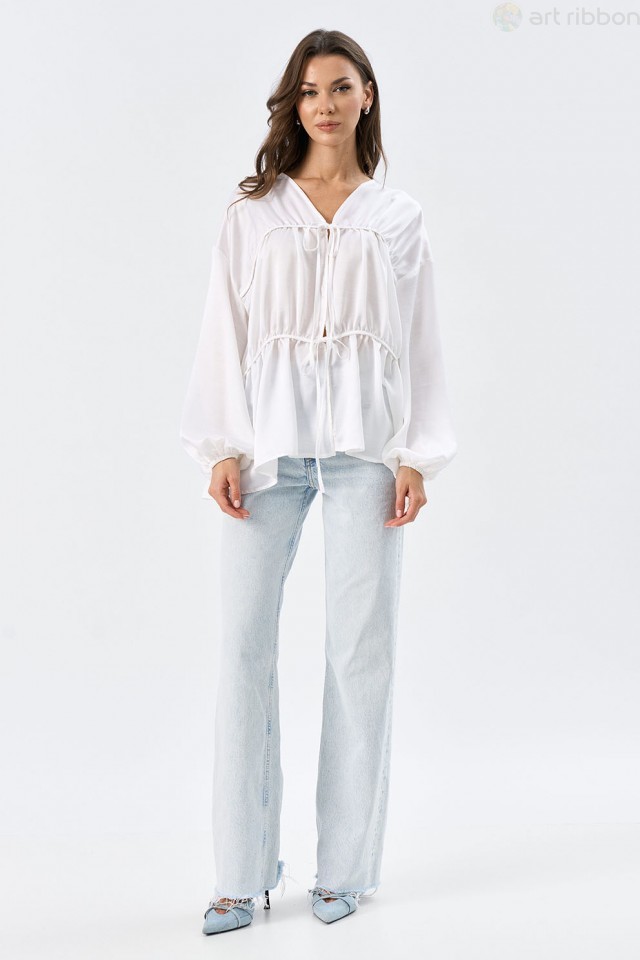 COTTON. Возможные размеры: 44-46-48-50. Романтичная блзука молочного цвета изготовлена из легкой и невесомой вискозы. Блуза свободного силуэта, с застежкой на завязках. Рукав спущенный, низ присборен ... Показать описаниена эластичную тесьму. Возможно отличие фотографии по цвету, связанное с разной цветопередачей монитора. Состав ткани:Вискоза: 60%, Полиэстер: 30%, Шелк: 10%. Длина по центру спинки (см): 68, 68, 68, 68. По груди (см): 51, 52, 55, 56. По бедрам (см): 56, 57, 58. Длина рукава (см): 50, 50, 50, 50. Ширина рукава (см): 22.4, 22.4, 23, 23. Ширина плеча (см): 22, 22, 22.4, 22.4. Ширина спинки (см): 45, 46, 49, 50. Подробное описание: https://artribbon.ru/m1094t-bluzka-zhenskaja.html