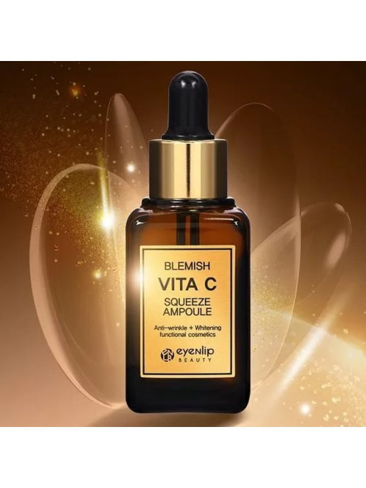 Eyenlip Blemish Vita C Squeeze Ampoule Ампульная сыворотка с высокой концентрацией витамина C предназначена для антивозрастного ухода, помогает оставаться коже гладкой и сияющей. Преимущества: осветля... Показать описаниеет пигментацию и предупреждает появление новых пятен, повышает эластичность кожи, способствует разгаживанию морщин, защищает кожу от преждевременного увядания, продлевает ее молодость. Аскорбиновая кислота обладает способностью нейтрализовывать свободные радикалы и ослаблять окислительный стресс - главную причину старения кожи. Помогает справиться с различными выспаниями на коже, устраняет тусклость и осветляет пигментацию, учавствует в синтезе коллагена, тем самым повышает упругость кожи и борется с морщинами. Укрепляет стенки сосудов и улучшает кровообращение в целом, что помогает избавиться от отеков. Способ применения: нанести на очищенную и тонизированную кожу лица несколько капель средства, равномерно распределить.