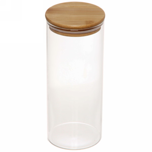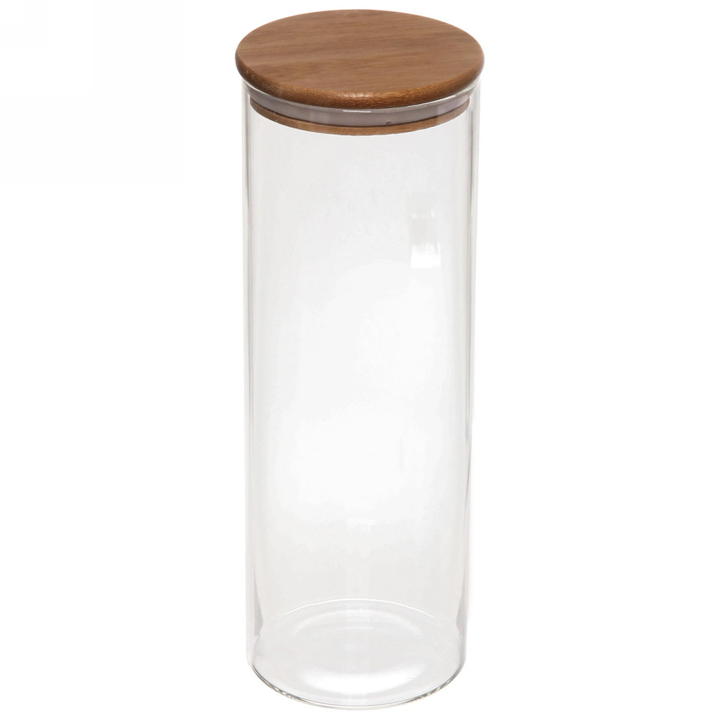 Банка для продуктов стеклянная 1300мл "Хай-Тек" с крышкой из акации 9*25смВопросы по товару