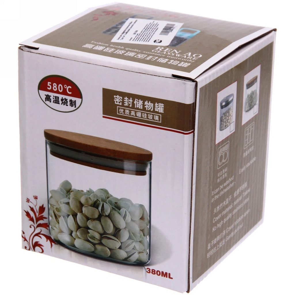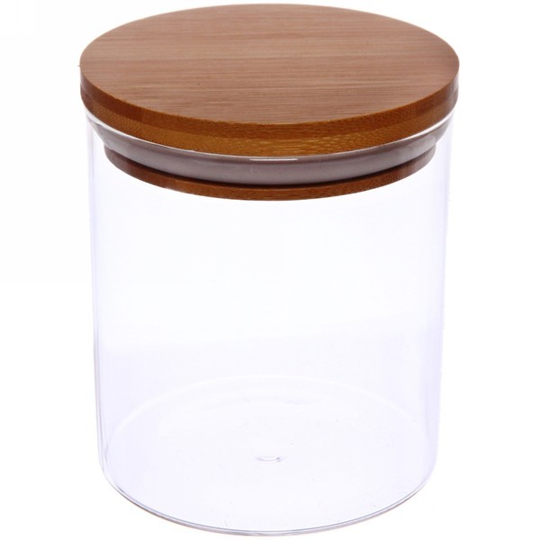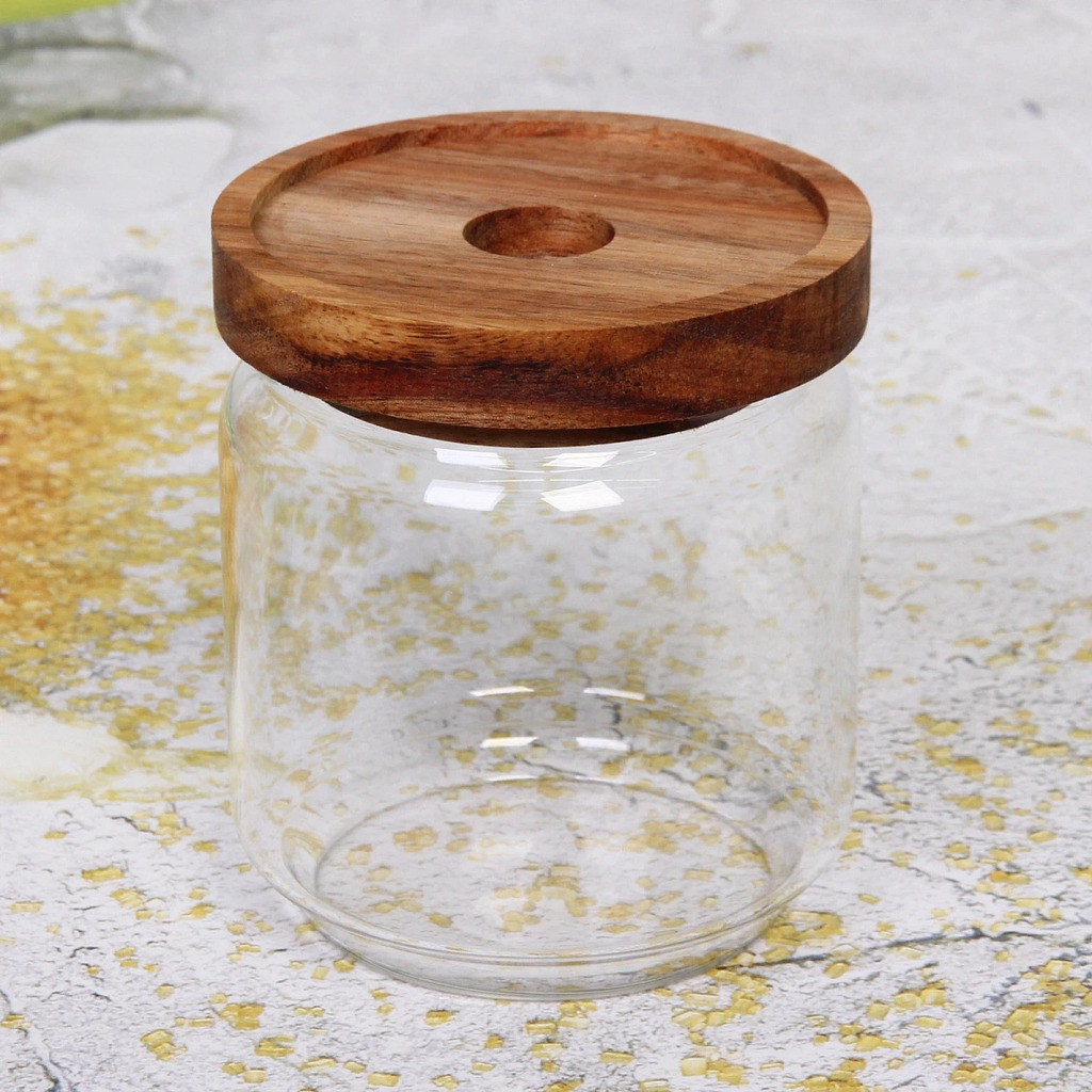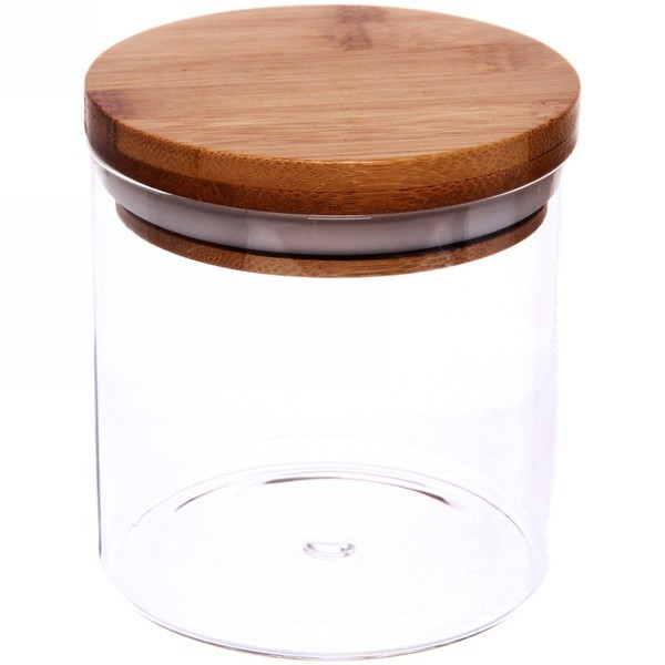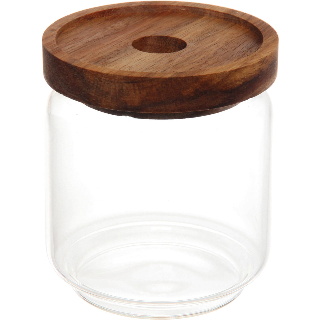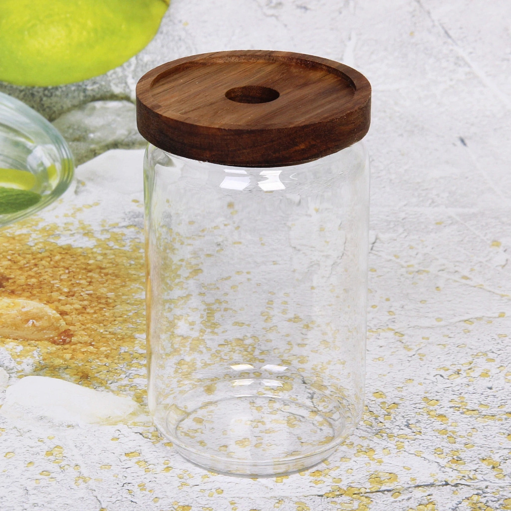 Банка для продуктов стеклянная 750мл "Хай-Тек" с крышкой из акации 9*15смВопросы по товару