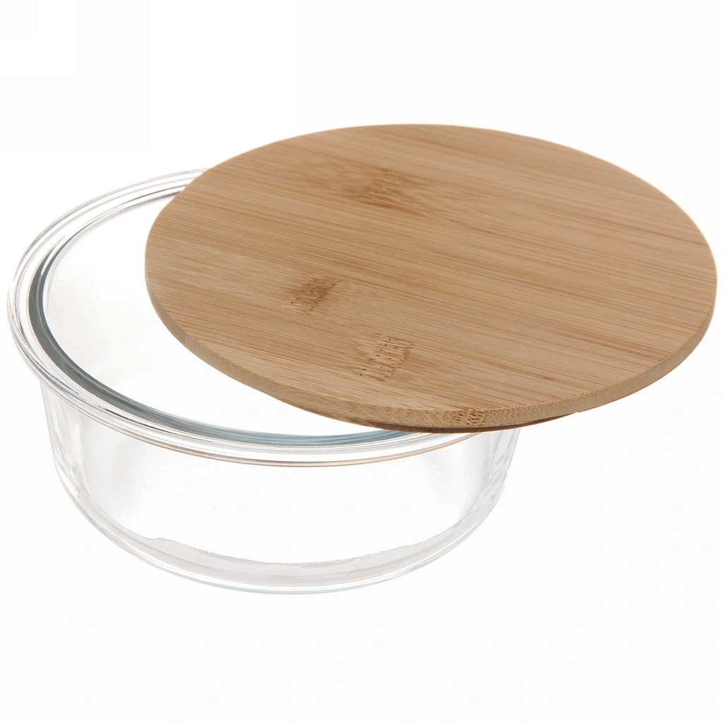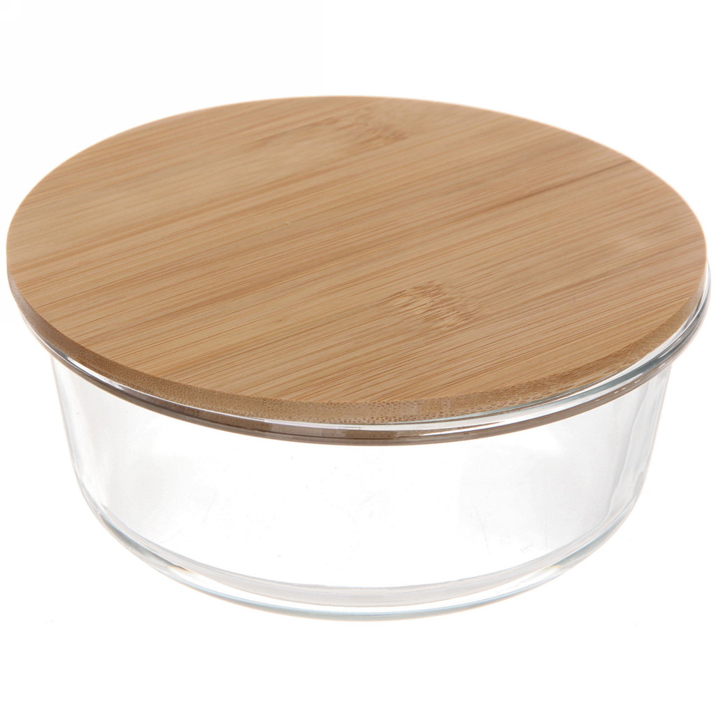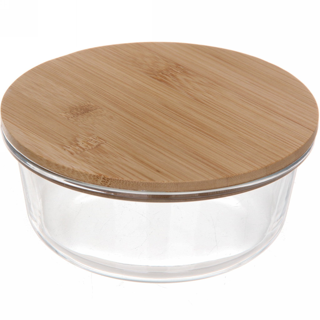 Контейнер стеклянный 650мл Хай-Тек круглый с бамбуковой крышкойВопросы по товару