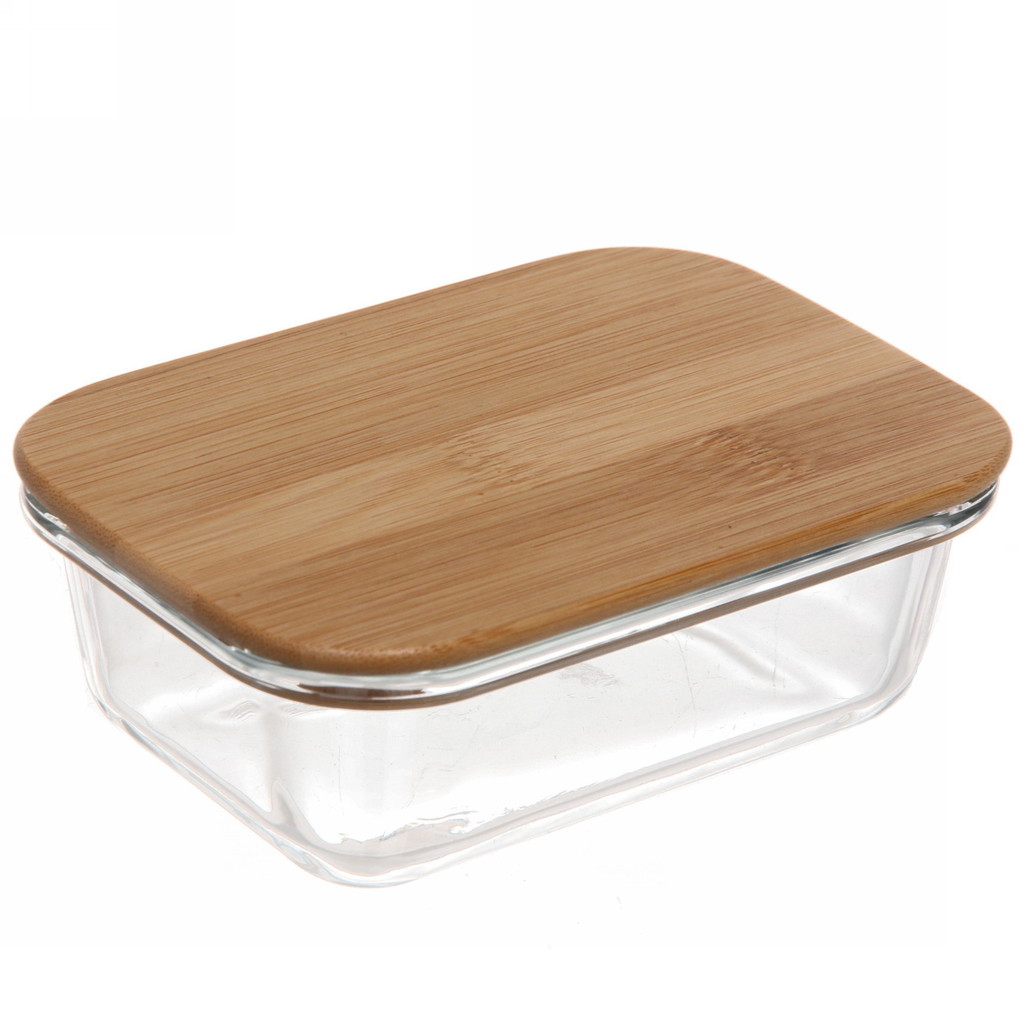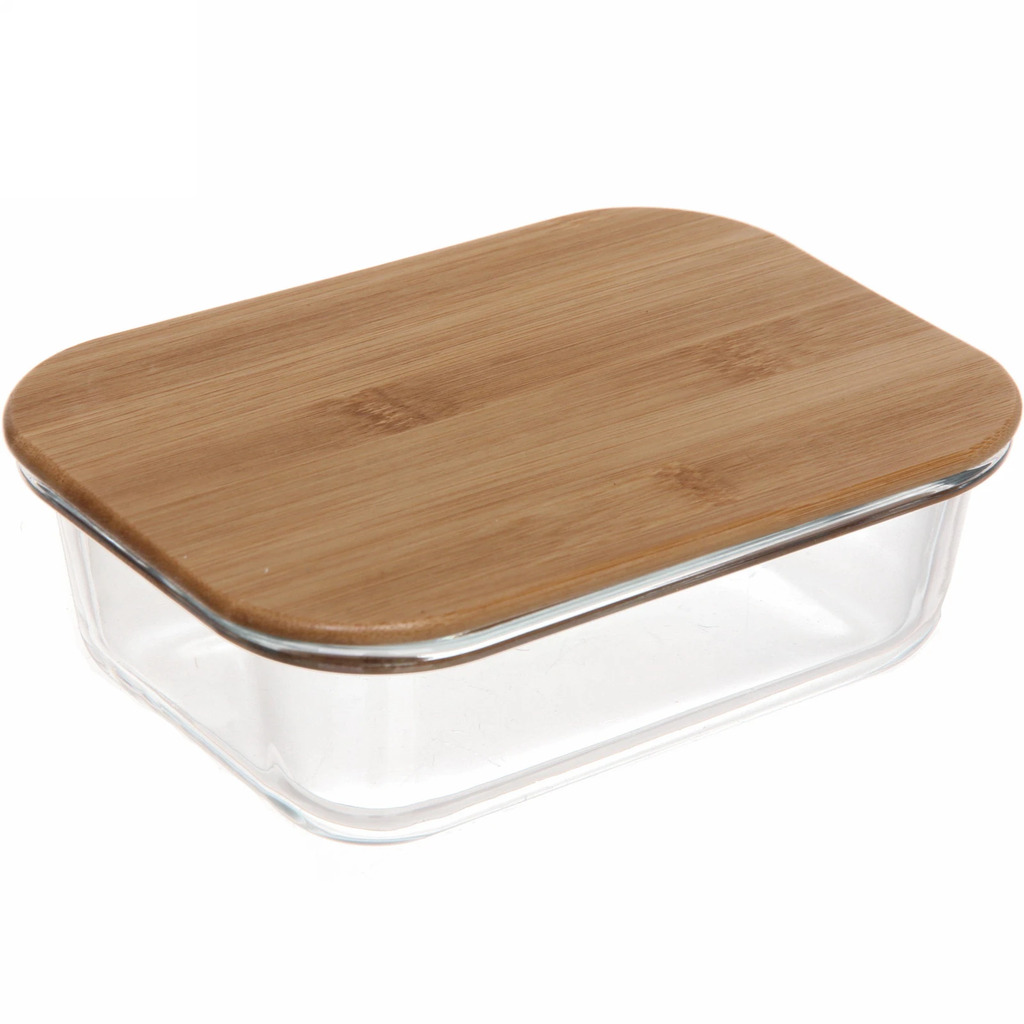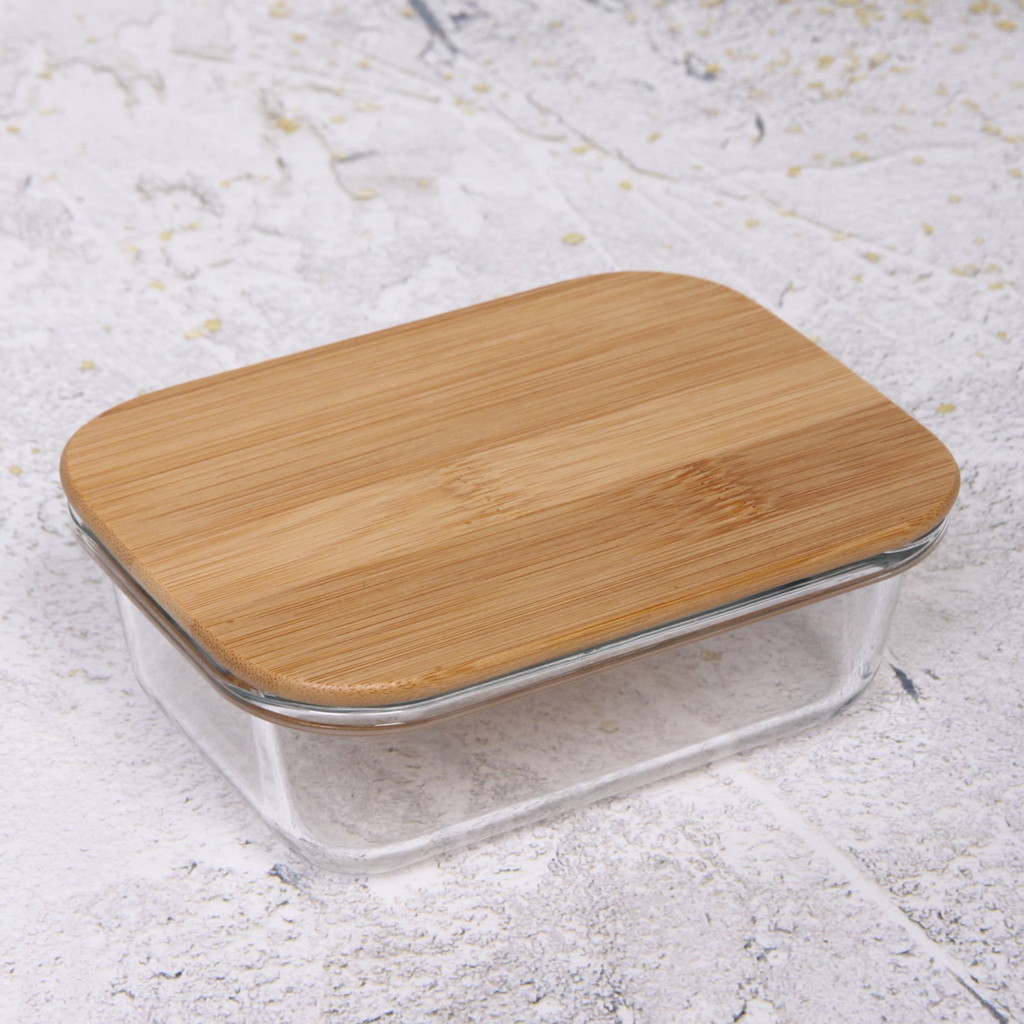 Контейнер стеклянный 600мл Хай-Тек прямоугольный с бамбуковой крышкойВопросы по товару