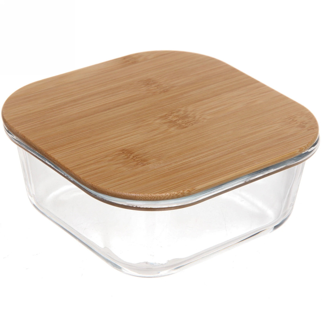 Контейнер стеклянный 700мл Хай-Тек квадратный с бамбуковой крышкойВопросы по товару