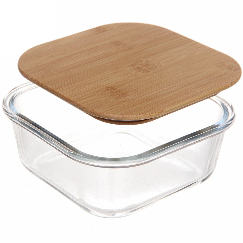 Контейнер стеклянный 300мл "Хай-Тек" квадратный с бамбуковой крышкойВопросы по товару