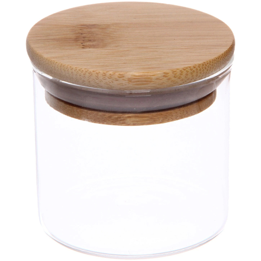 Банка для продуктов стеклянная 100мл "Хай-Тек" с бамбуковой крышкой 6,5*7смВопросы по товару