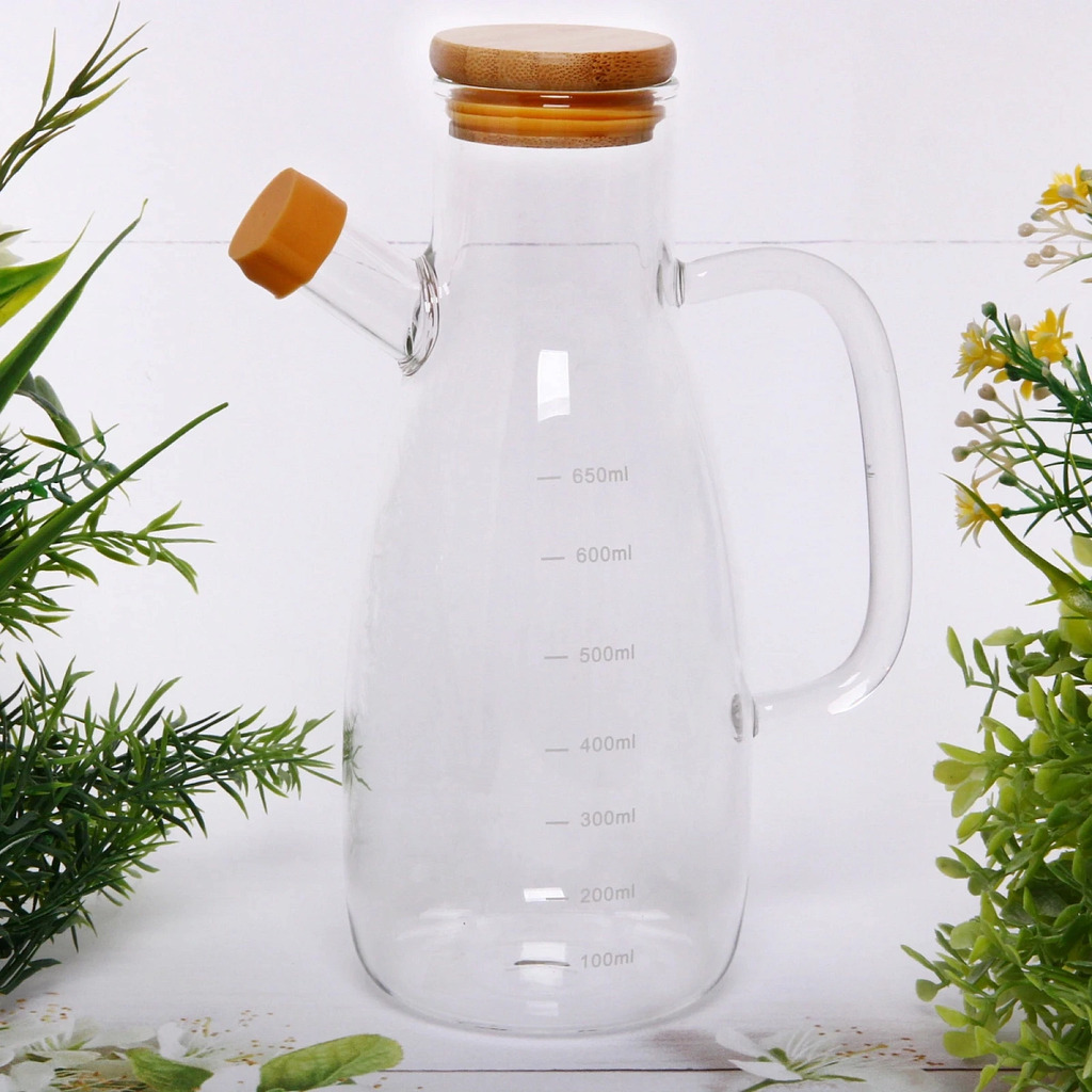 Бутылка стеклянная для специй 650 мл Хай-Тек с бамбуковой крышкойВопросы по товару