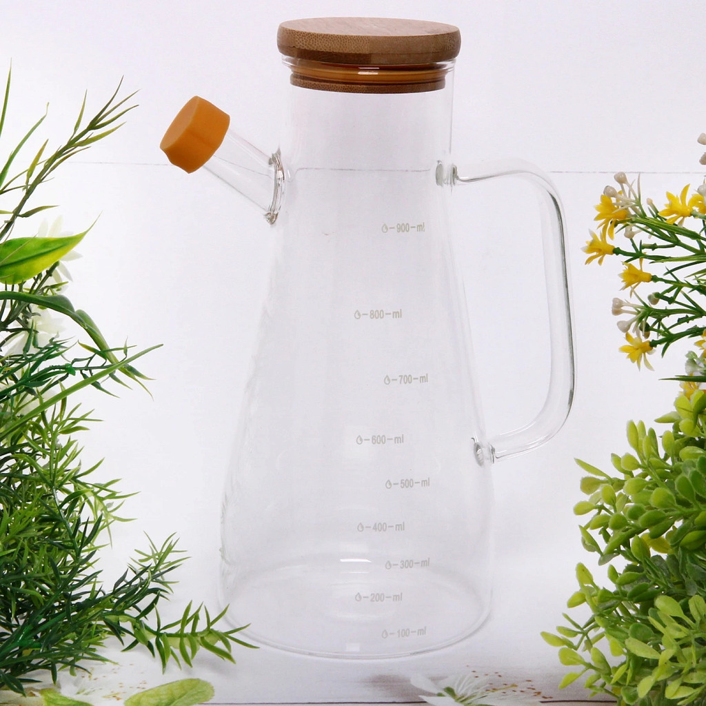 Бутылка стеклянная для специй 900 мл Хай-Тек с бамбуковой крышкойВопросы по товару