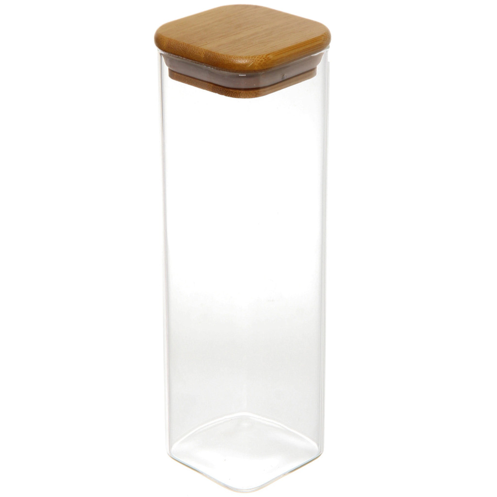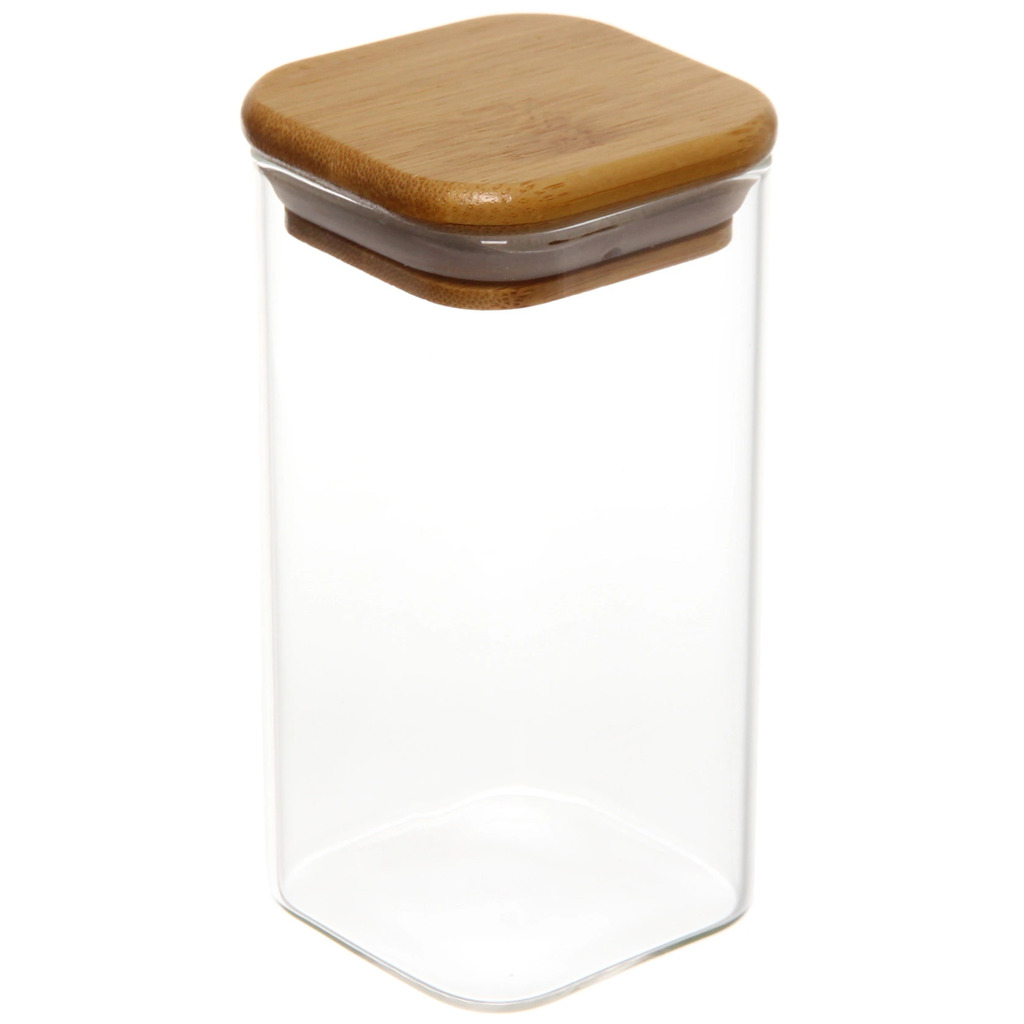 Банка для продуктов стеклянная 1000мл "Хай-Тек" с бамбуковой крышкой, квадратная 10*15смВопросы по товару