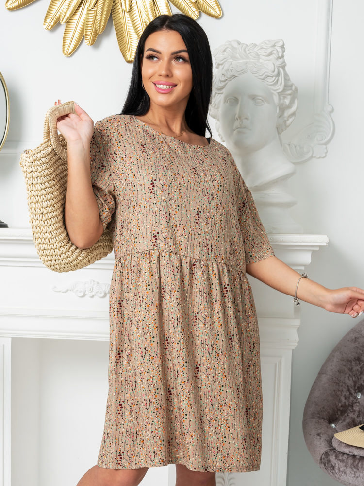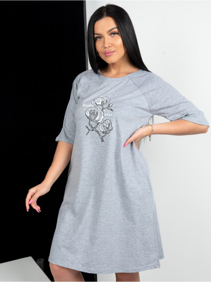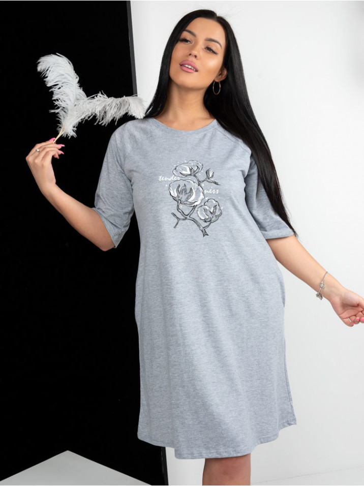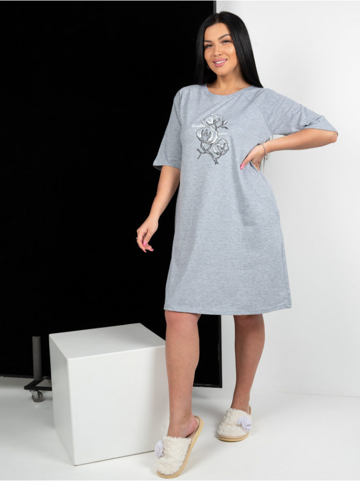 Краткое описание Женская туника, длиной до колен, с рукавом реглан. Туника свободного кроя, с боковыми карманами, отлично подойдет для дома и отдыха. Комфортная посадка, модная длина. Принт, в виде ве... Показать описаниеточки хлопка, добавит образу мягкости и уюта.