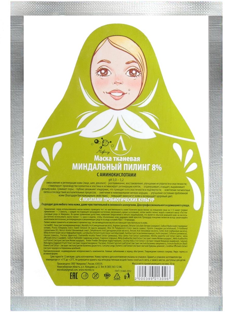 Маска для лица "Миндальный пилинг 8%",саше Вопросы по товару
