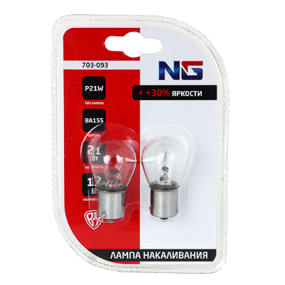 NG Лампа накаливания P21W S25, 12В 21Вт, BA15S, 2шт/блистер (Original)