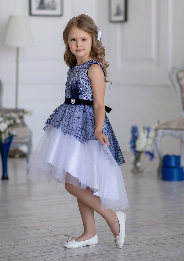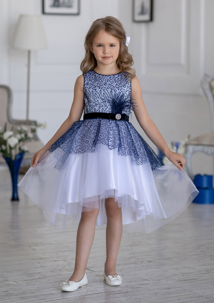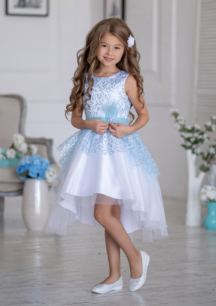 Оригинальное платье полуприлигающего силуэта с завышенной талией и поясом, завязывающимся сзади на бант. Лиф платья выполнен из принтованного атласа. Крой юбки - конический с ассиметричным низом, ... Показать описание;перед короче, со стороны заднего полотнища длиннее. Платье без рукавов и внутренних объемных юбок из сетки. Верхняя юбка из сетки, присборенной по линии талии, в тон однотонного атласа на нижней юбке. В этом восхитительном платье ваша маленькая принцесса будет неотразима на любом торжестве. Производитель оставляет за собой право изменения дизайна отделки, фурнитуры и оттенка ткани без потери для внешнего вида и качества изделий. Состав: Верх 100% полиэстер, подклад 100% хлопок