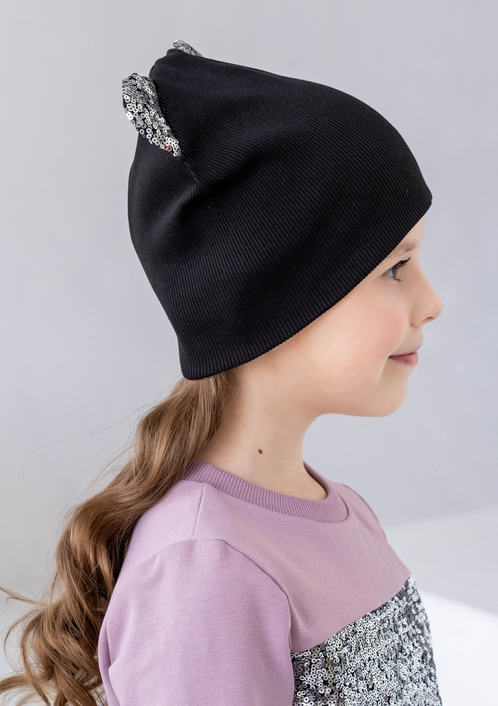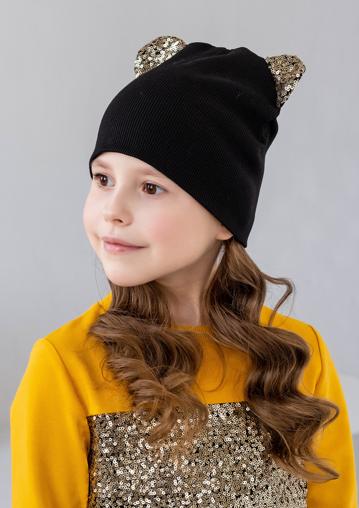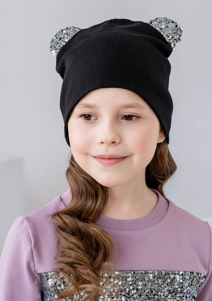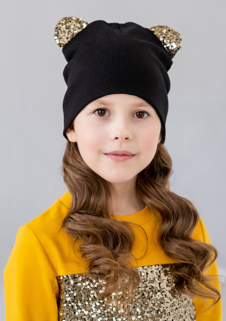 Шапочка с ушками, для девочки, выполнена из трикотажного полотна «рибана». Шапочка состоит из двух слоёв, с одним задним средним швом. Ушки шапочки выполнены из отделочной ткани с пайеткой. Состав: 95... Показать описание% хлопок, 5% лайкра