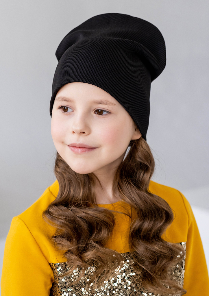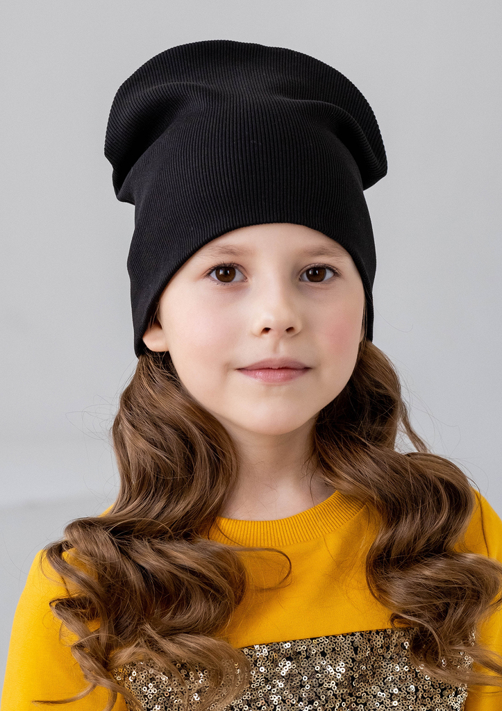 Шапочка для девочки, выполнена из трикотажного полотна «рибана». Шапочка состоит из двух слоёв, с одним задним средним швом. Состав: 95% хлопок, 5% лайкра