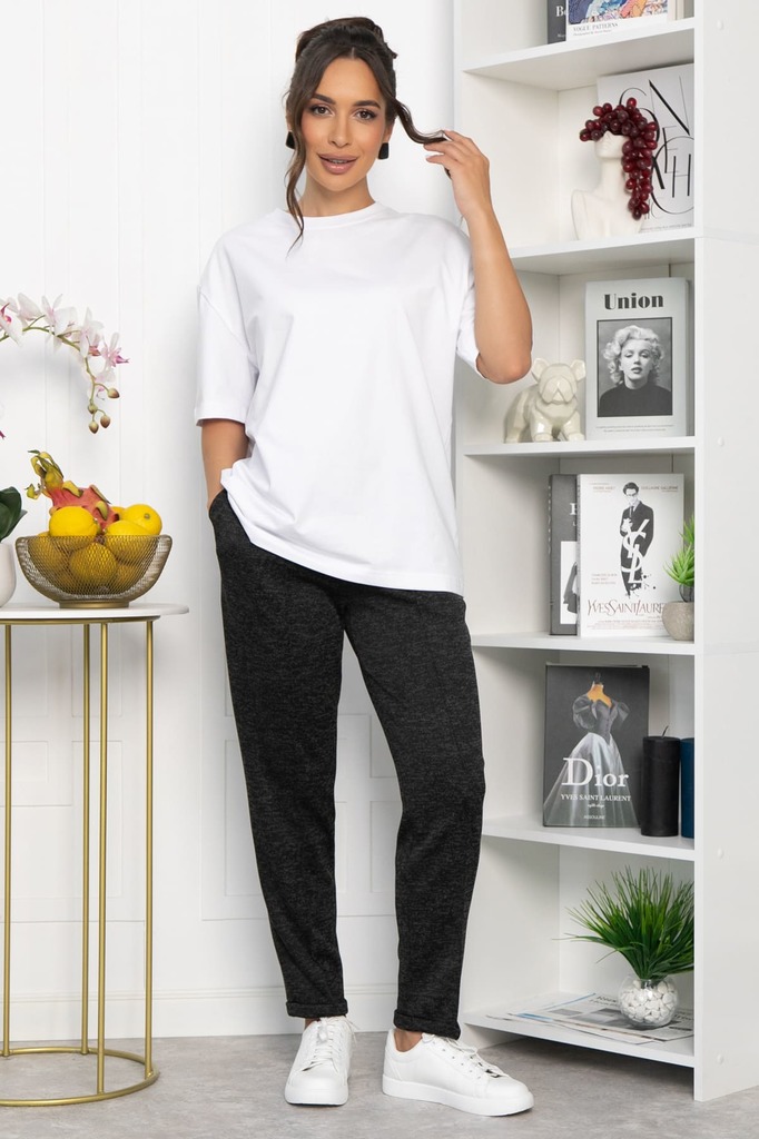 Состав: 65% полиэстер, 30% хлопок, 5% эластан. Материал: трикотаж. Цвет: чёрно-белый. Принт: отсутствует. Тип посадки: средний. Фасон: классический. Пояс: притачной. Крой: прямой. ... Показать описаниеРезинка в поясе: есть. Карманы: есть. Вид застежки: без застёжки. Декоративные элементы: отсутствуют. Длина готового изделия по внутреннему шву: 44-52/ 80 см. Длина готового изделия по боковому шву: 44-48/ 106 см, 50-52/ 107 см. Трикотажные брюки прямого кроя с карманами и широким поясом-резинкой изготовлены из приятной к телу ткани средней плотности, имеющей в составе хлопок. Стильные и удобные брюки имеют кулиску с фиксатором по низу брючин, что позволяет носить их абсолютно по-разному. Фактически модель сочетает в себе два вида брюк. Полностью распустив кулиску, вы получите прямые брюки, а затянув — модные спортивные брючки по типу джоггеров. Эта задумка еще хороша и тем, что вы можете корректировать низ изделия в зависимости от погодных условий. Красивый широкий пояс дополнен двумя шнурками. Такие брюки имеют огромное количество сочетаний с обувью и другими изделиями. В этих брючках вас всегда будут сопровождать комфорт и хорошее настроение. Уход за изделием: ручная стирка до 30 градусов; нельзя отбеливать; отжим запрещён; гладить при t не более 110 С; гладить с изнанки. Внимание! Рекомендуем ориентироваться на размерную сетку и выбирать свой привычный размер, согласно размерной таблице. *Допуск отклонения длины при массовом производстве 1-3 см является нормой.
