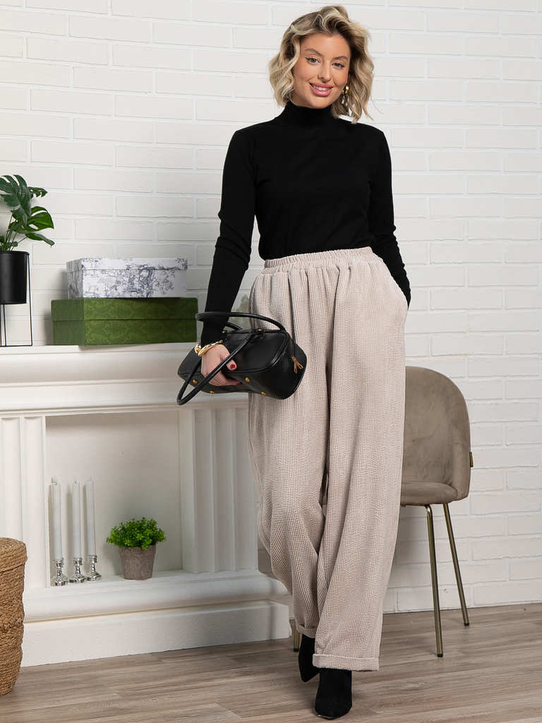 Артикул: Б8269. Ткань: вельвет. Состав: 60% п/э, 35% вискоза, 5% эластан. Цвет: молочный. Вид застежки: отсутствует. Силуэт: прямой. Карманы: есть. Длина изделия по боковому шву: 46-48/... Показать описание 95 см, 50-52/ 96 см, 54-56/ 97 см. Рост модели: 168 см. Классические брюки из вельвета помогут Вам в создании изящных образов. По талии брюки на резинке, что позволяет добиться комфортной посадки по фигуре. В боковых швах есть карманы. Брюки подойдут для офисного и повседневного образа. Они не сковывают движений и выглядят стильно и лаконично, Вам останется только подобрать верх. Уход за изделием: ручная стирка до 30 градусов; нельзя отбеливать; деликатный отжим; гладить при t не более 110С; гладить с изнанки. *Допуск отклонения длины при массовом производстве 1-3 см является нормой.