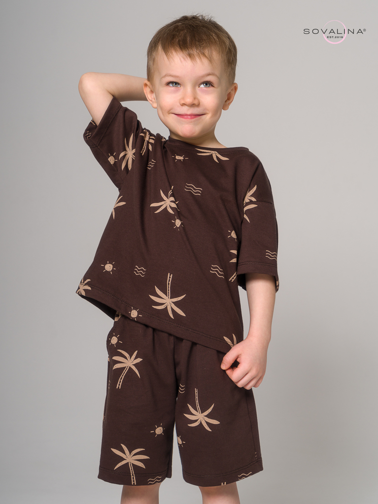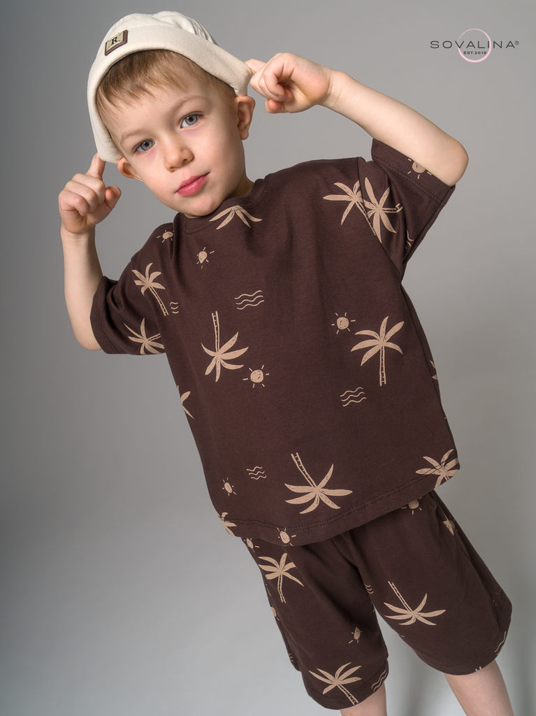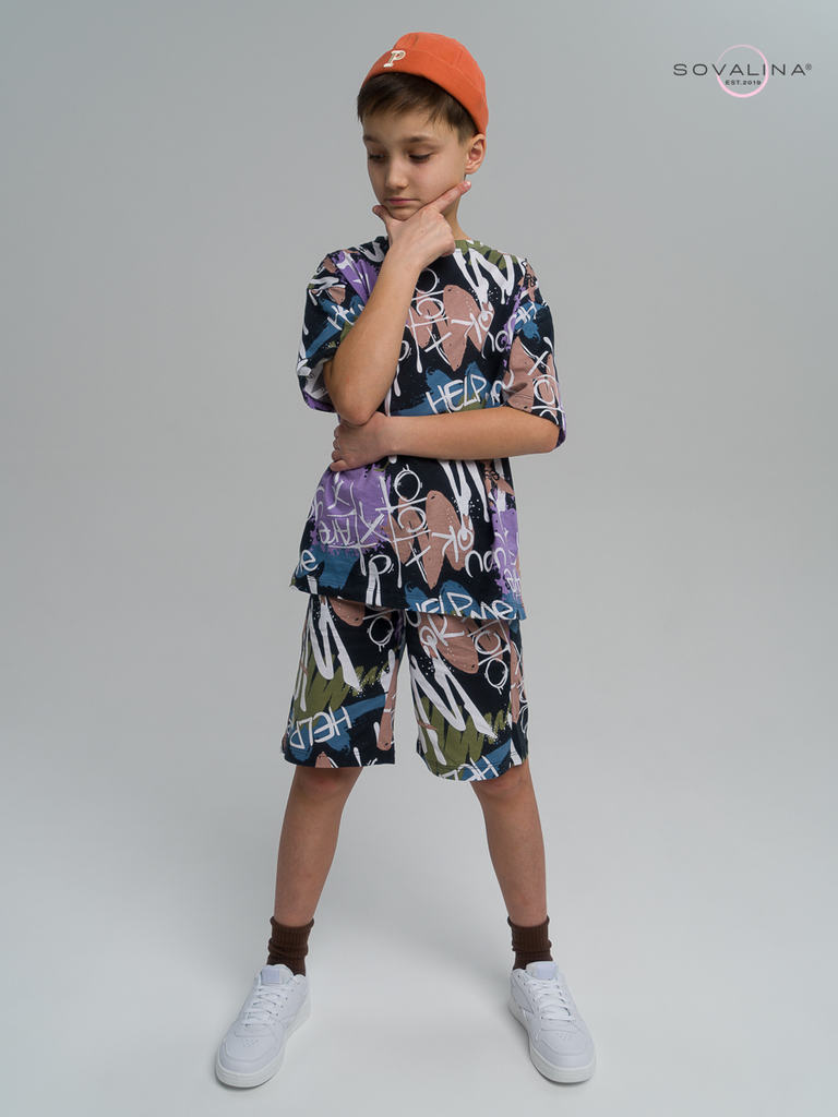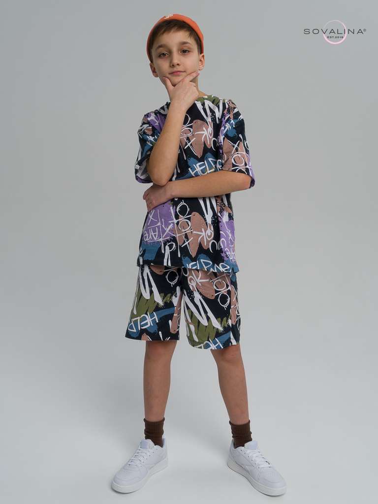Летний хлопковый комплект для мальчиков бренда SOVAlina. Детский спортивный костюмчик двойка состоит из легкой и широкой футболки с принтом. Она выполнена из тонкого и прочного трикотажа, что делает е... Показать описаниее идеальной на каждый день для встреч с друзьями, путешествий, на дачу. Модный комплект также включает шорты на резинке и с карманами, имеют комфортную посадку для активного отдыха, спортивных игр и мероприятий. Майка с короткими рукавами и актуальным дизайном добавляет стильный акцент этому комплекту. Свободная футболка оверсайз изготовлена из хлопка и обеспечивает максимальный комфорт и свободу движений, подойдет и для дома, так как это дышащий материал. Этот тонкий и легкий комплект также подходит как форма для тренировок, физкультуры. Выполнен из высококачественных материалов, производства Турция, чтобы обеспечить долговечность и комфорт. Задуман специально - стандартные шорты и большая оверсайз футболка.