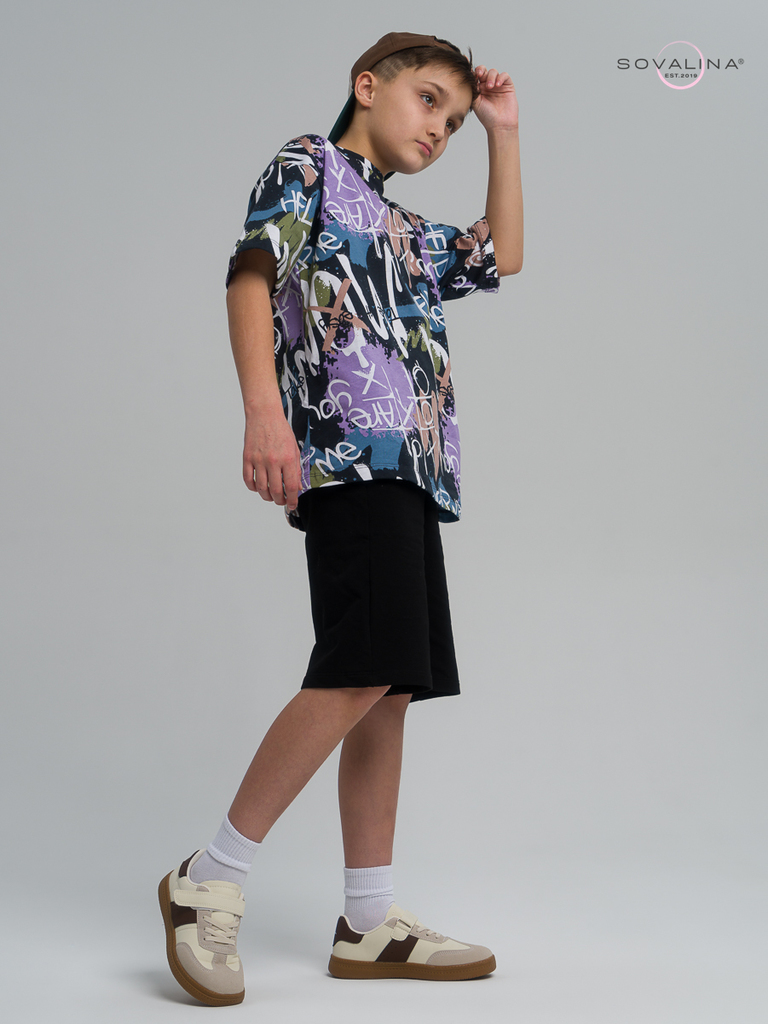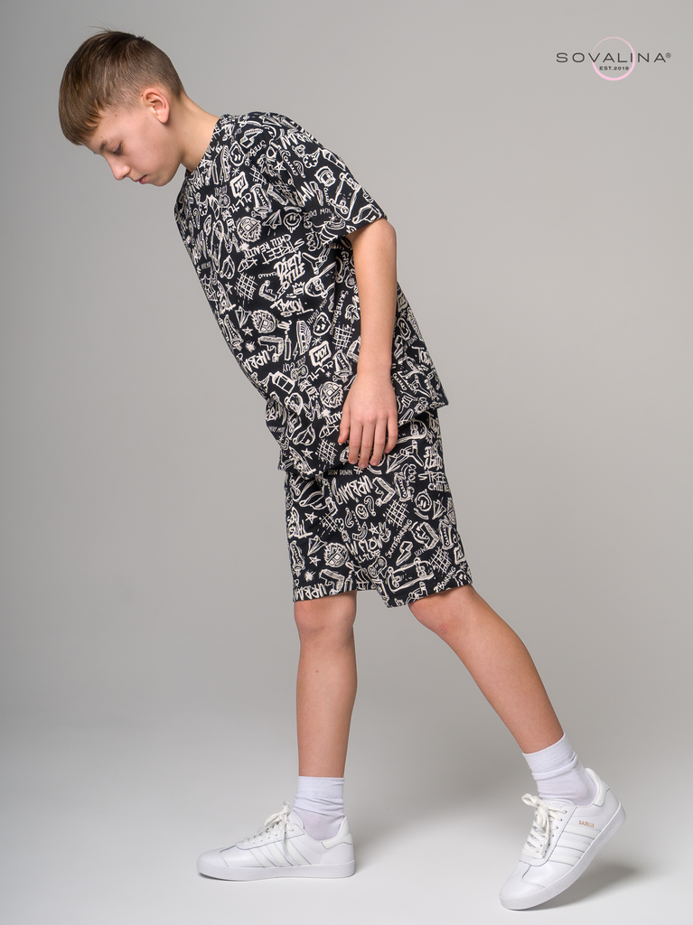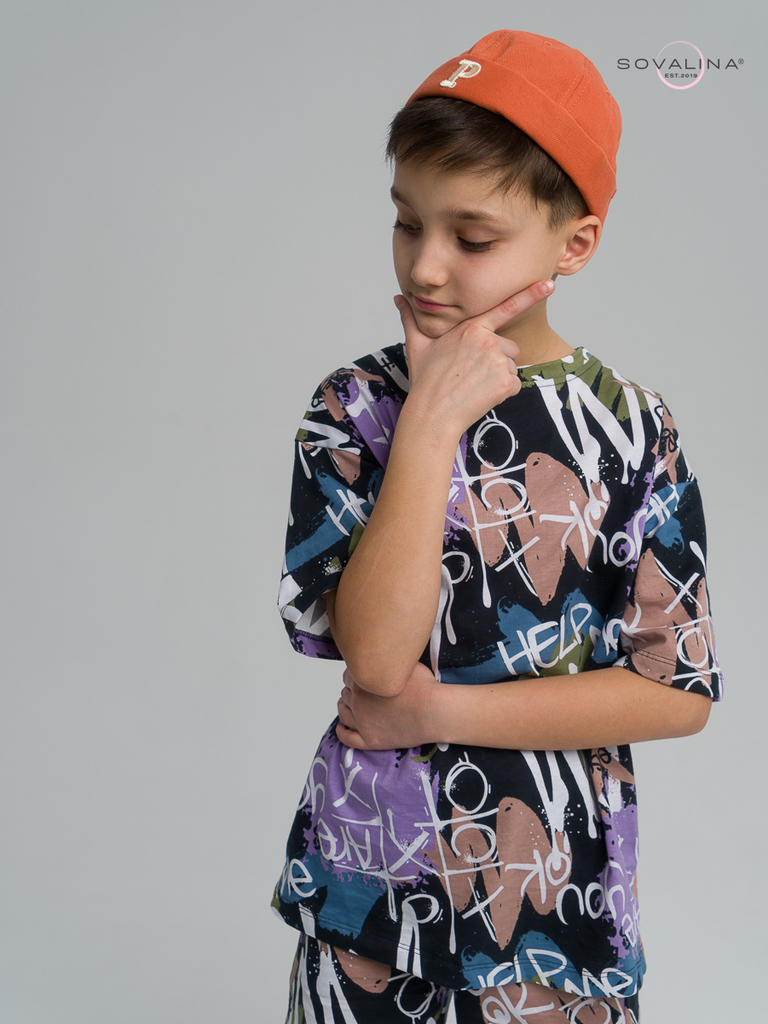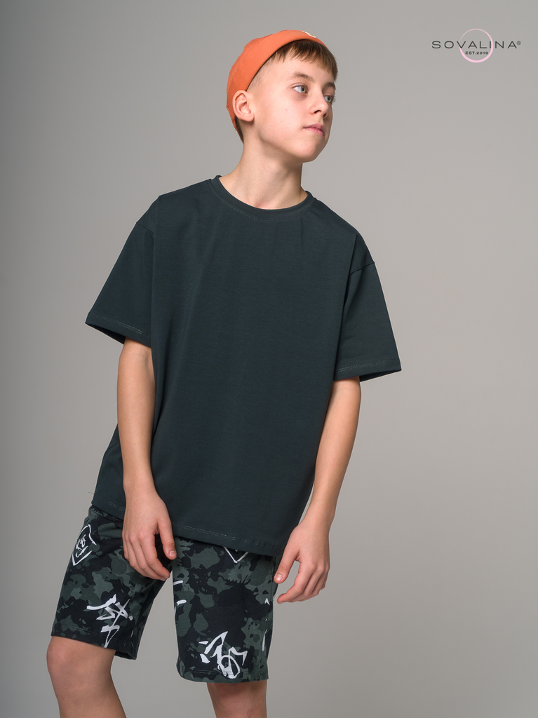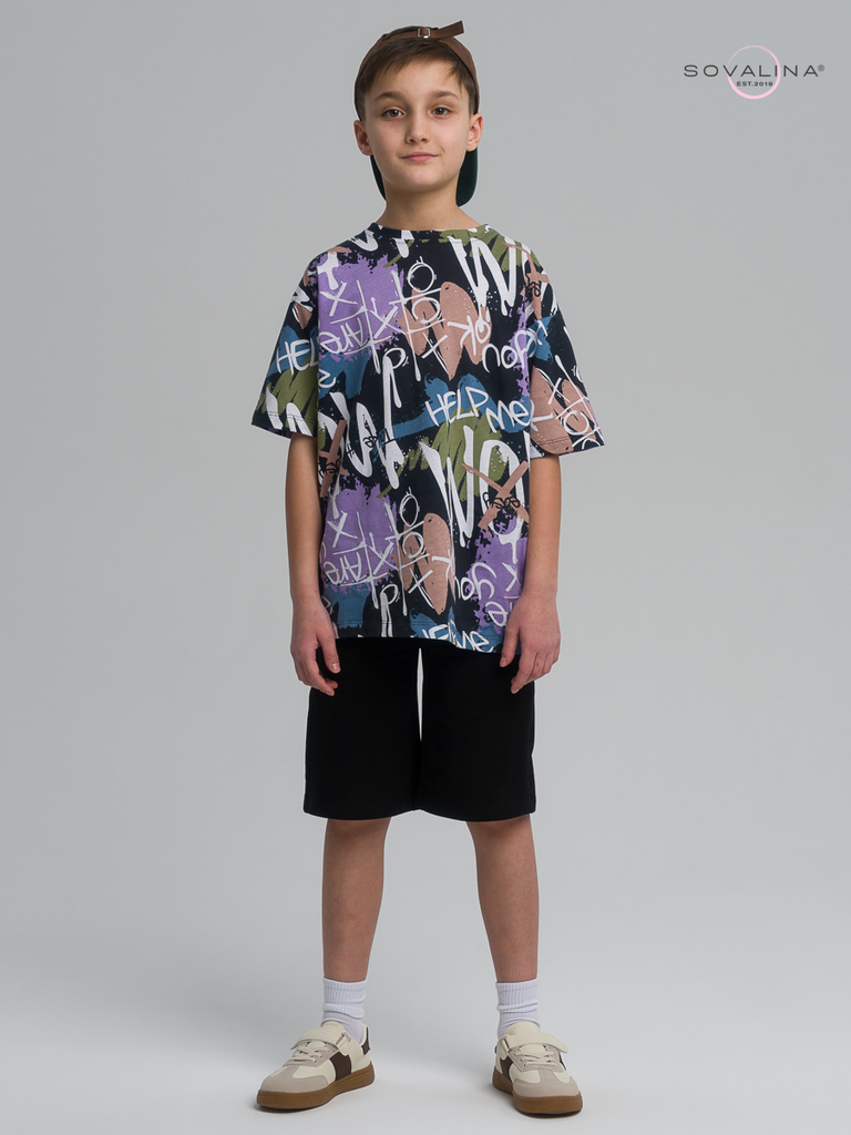 Летний хлопковый комплект для мальчиков подростков бренда SOVAlina. Детский спортивный костюмчик двойка состоит из легкой и широкой футболки с принтом. Она выполнена из тонкого и прочного трикотажа, ч... Показать описанието делает ее идеальной на каждый день для встреч с друзьями, путешествий, на дачу. Модный комплект также включает шорты на резинке и с карманами, имеют комфортную посадку для активного отдыха, спортивных игр и мероприятий. Майка с короткими рукавами и актуальным дизайном добавляет стильный акцент этому комплекту. Свободная футболка оверсайз изготовлена из хлопка и обеспечивает максимальный комфорт и свободу движений, подойдет и для дома и на выход, так как это дышащий материал. Этот тонкий и легкий комплект также подходит как форма для тренировок, физкультуры. Выполнен из высококачественных материалов, производства Турция, чтобы обеспечить долговечность и комфорт. Задуман специально - стандартные шорты и большая оверсайз футболка, что так любят подростки.
