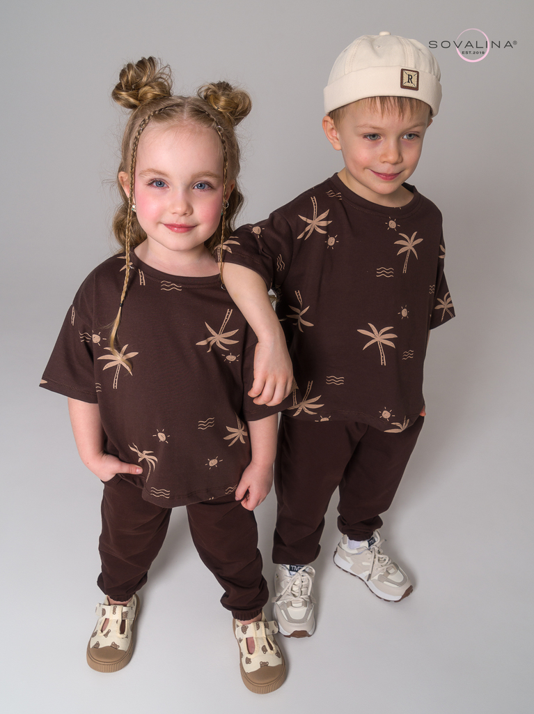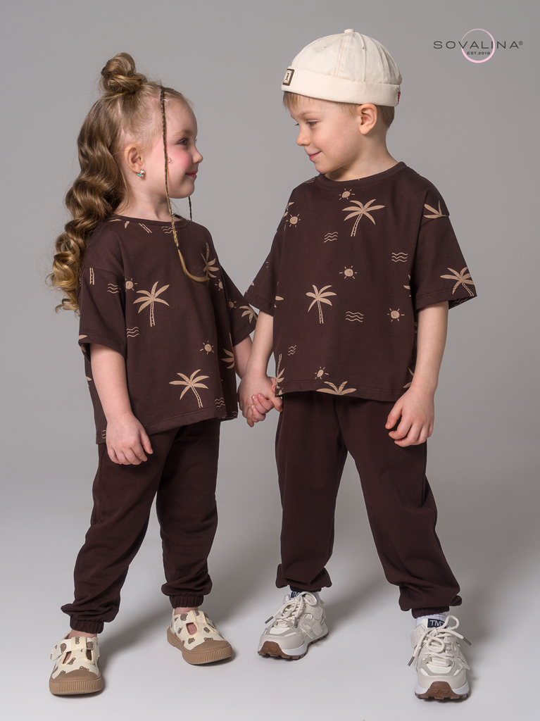 Легкий хлопковый детский комплект от бренда SOVAlina. Детский спортивный костюмчик двойка состоит из легкой и широкой футболки с принтом. Она выполнена из тонкого и прочного трикотажа, что делает ее и... Показать описаниедеальной на каждый день. Модный комплект также включает штаны на резинке и с карманами, имеют комфортную посадку для активного отдыха, спортивных игр и мероприятий. Майка с короткими рукавами и актуальным дизайном добавляет стильный акцент этому комплекту. Свободная футболка оверсайз и брюки изготовлены из хлопка, что обеспечивает максимальный комфорт и свободу движений. Костюм подойдет и для дома и в садик, так как это дышащий материал. Этот тонкий и легкий комплект также подходит как форма для тренировок, физкультуры. Выполнен из высококачественных материалов, производства Турция, чтобы обеспечить долговечность и комфорт. Задуман специально - стандартные спортивки и оверсайз футболка.