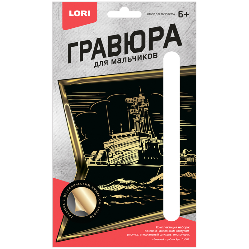 Гравюра малая с эффектом золота Военный корабль, 14,5*9,7см, Гр-581 Вопросы по товару