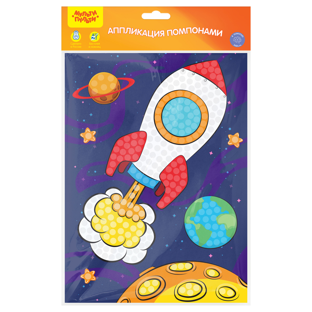 Аппликация помпонами Мульти-Пульти Космос, 20*28см, с раскраской, европодвес, PC_46916