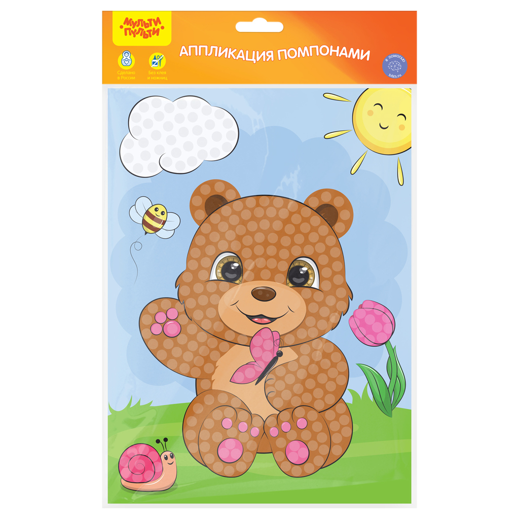 Аппликация помпонами Мульти-Пульти Мишка, 20*28см, с раскраской, европодвес, PC_46920 Вопросы по товару