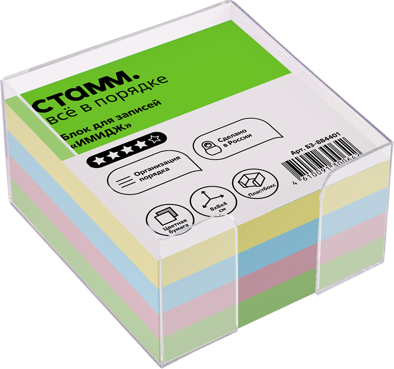 Блок для записей СТАММ Имидж, 8*8*4см, пластиковый бокс, цветной, БЗ-884401 Вопросы по товару
