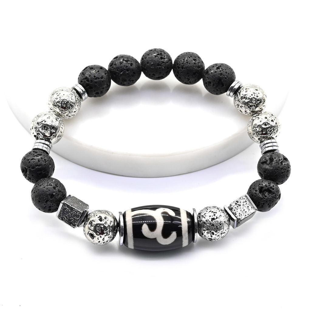 Браслет Дзи "Зеленая тара" агат бочонок 14*22мм с лавой шарик 10мм, 18смВопросы по товару