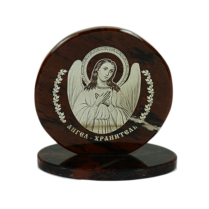 Икона из обсидиана круглая "Ангел Хранитель" диаметр 48мм