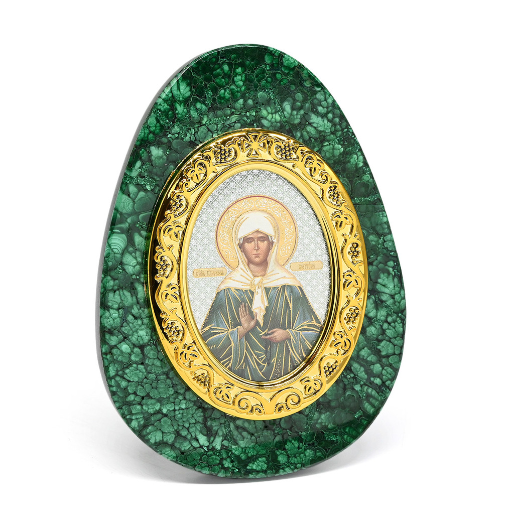 Икона из малахита яйцо "Матрона" 80*30*110ммИкона из малахита яйцо "Матрона" 80*30*110мм