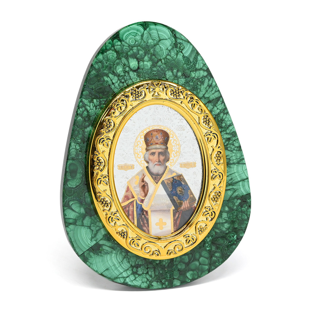 Икона из малахита яйцо "Николай Чудотворец" 80*30*110ммИкона из малахита яйцо "Николай Чудотворец" 80*30*110мм