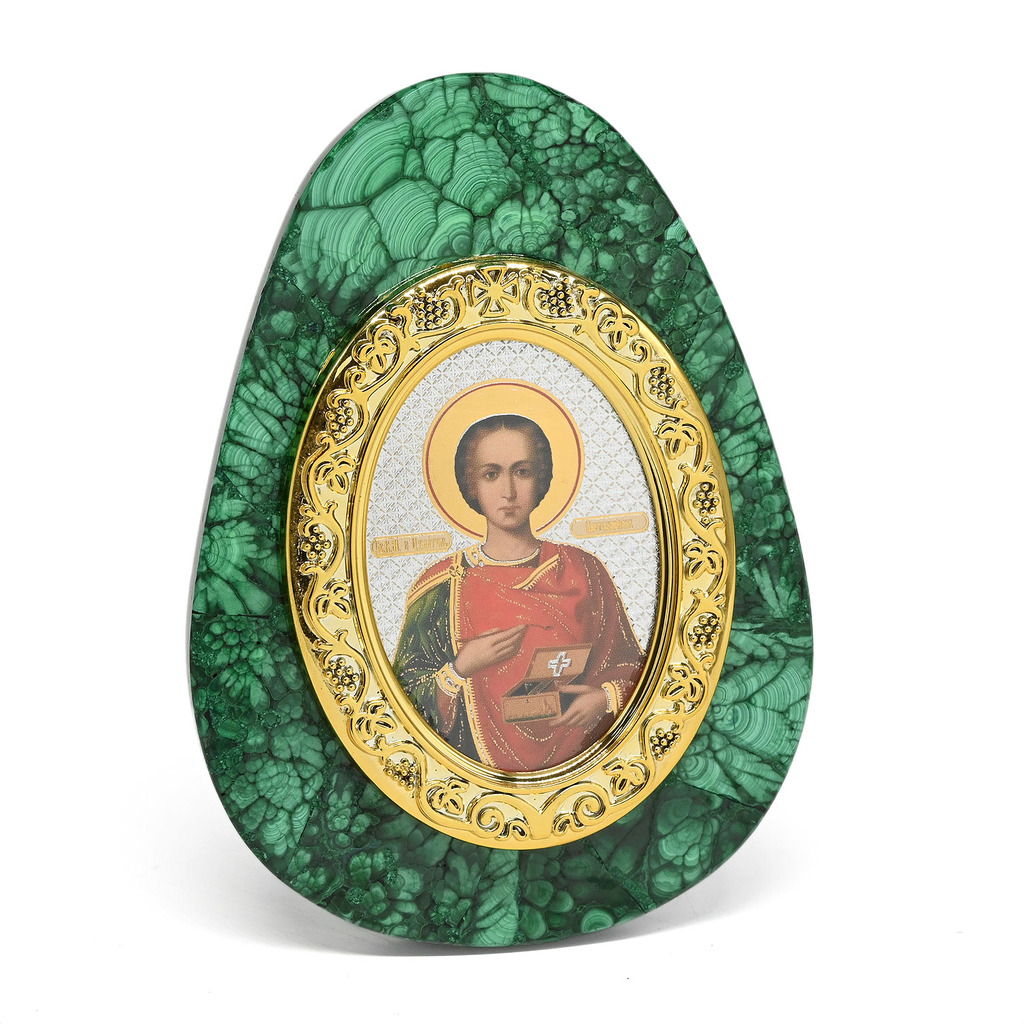 Икона из малахита яйцо "Пантелеймон" 80*30*110ммИкона из малахита яйцо "Пантелеймон" 80*30*110мм