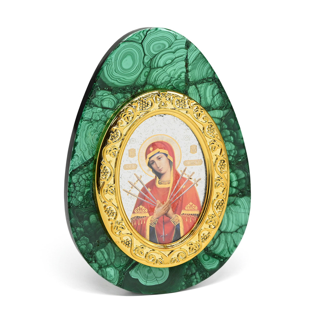 Икона из малахита яйцо "Семистрельная" 80*30*110мм