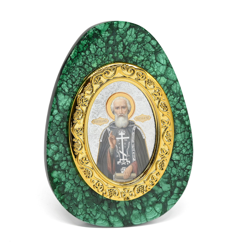 Икона из малахита яйцо "Сергий Радонежский" 80*30*110мм