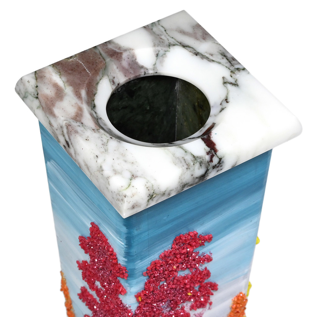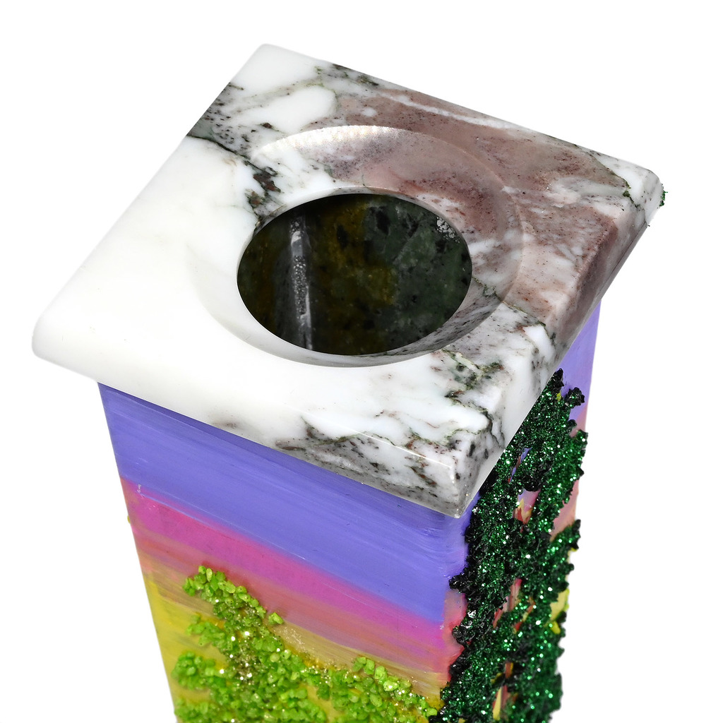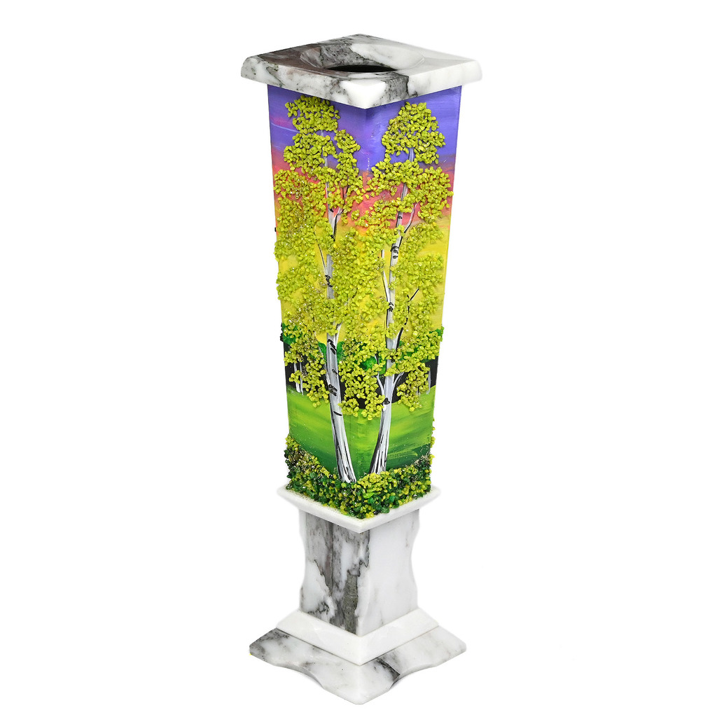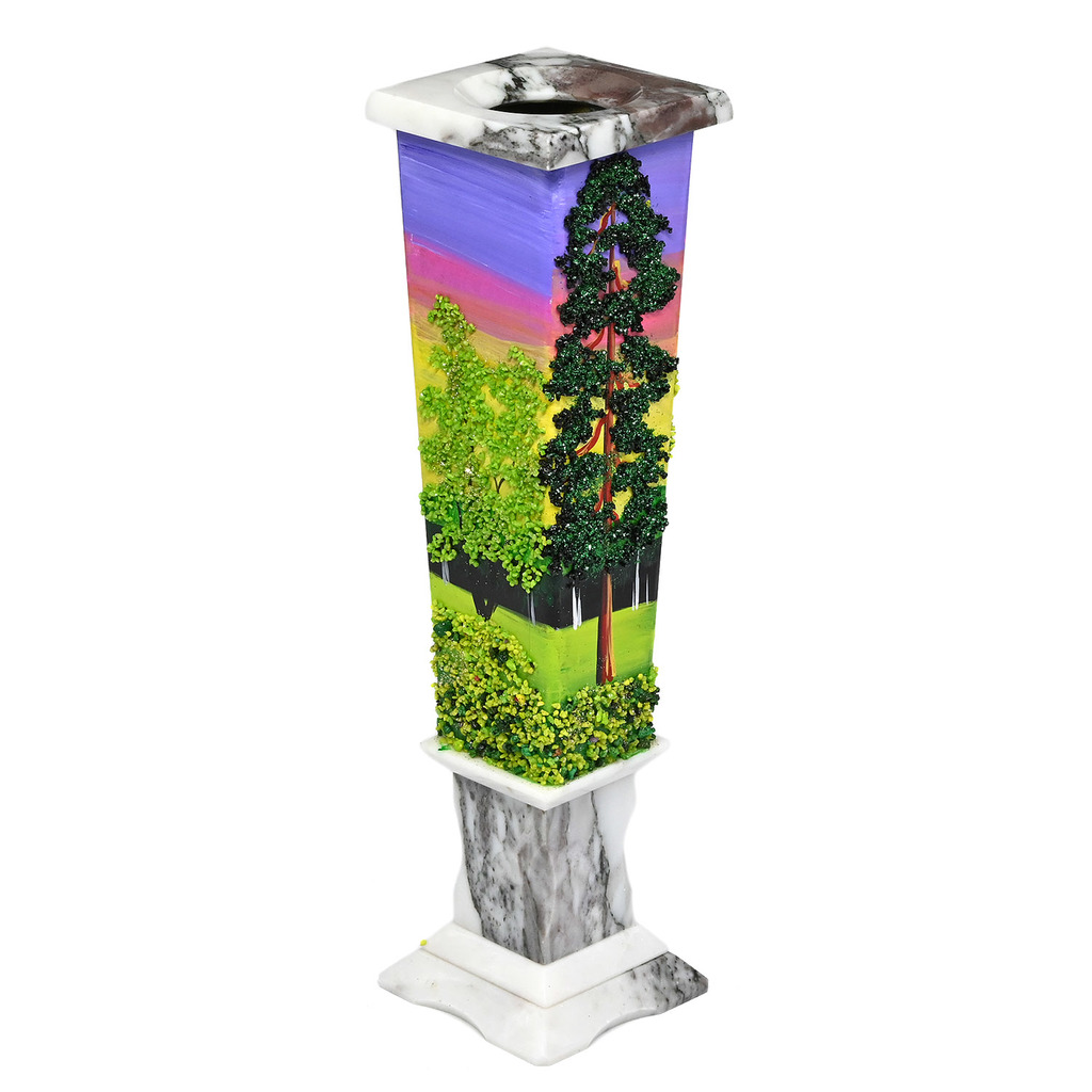 Камень: Мрамор Натуральность: Натуральный камень Месторождение: Россия Длина мм.: 70 Ширина мм.: 70 Высота мм.: 270 •Вазы изготовлены вручную из натурального камня, каждая ваза имеет неповторимый вид ... Показать описаниеи может отличаться от экземпляра представленного на фотографии. •Панно нарисовано вручную акриловыми красками, в сочетании с натуральными камней, нанесенными путем насыпки и фиксации, •Рисунок каждой вазы уникален. Роспись с четырех сторон. •Материал: Саянский мрамор, окрашенная мраморная крошка. •Упаковка: картон.