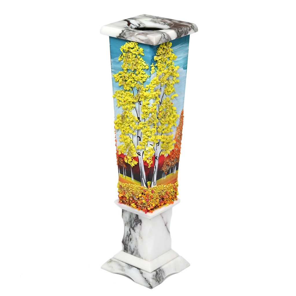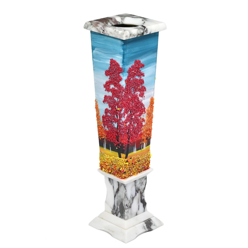 Ваза из мрамора 270мм с рисунком из камня "Осенний пейзаж"