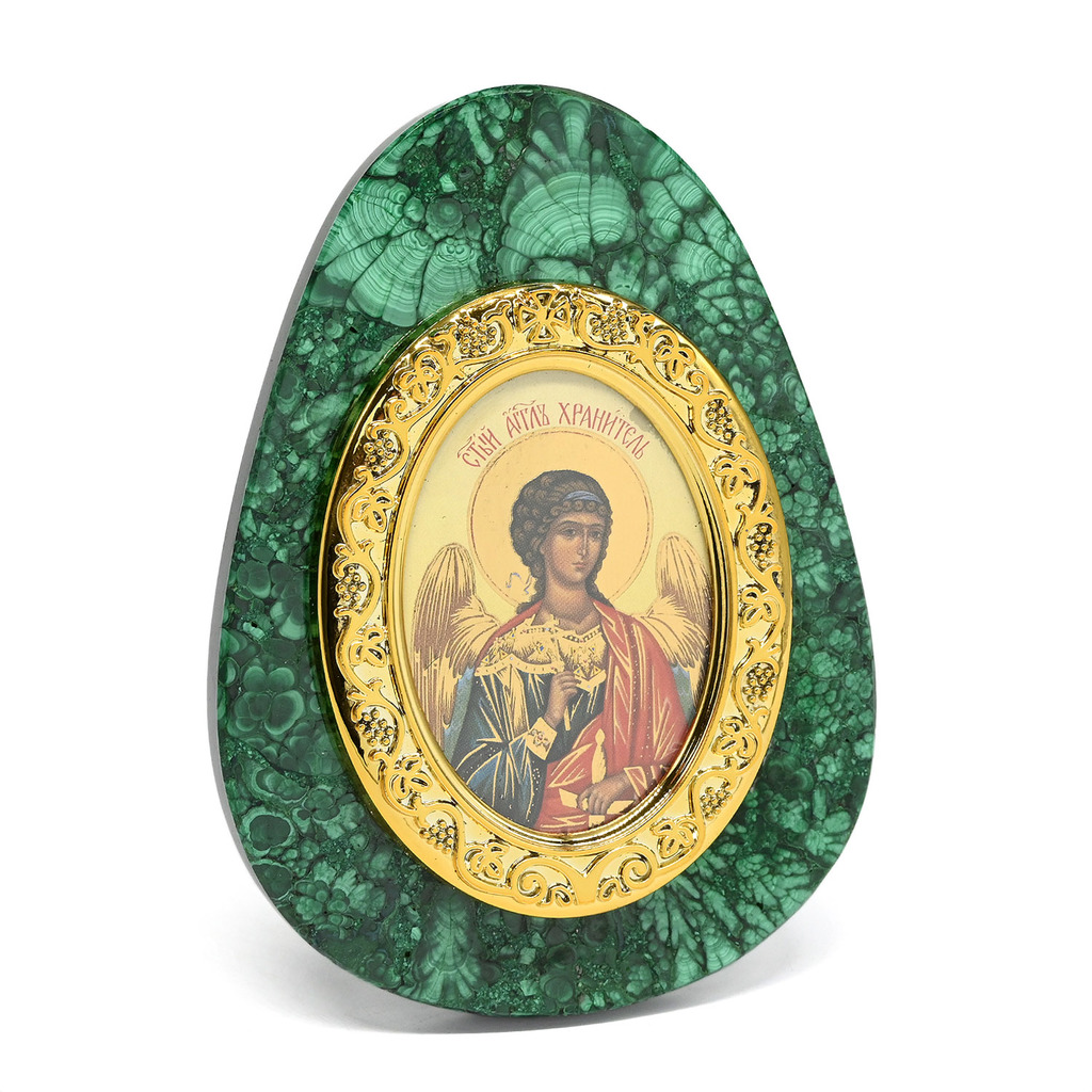 Икона из малахита яйцо "Ангел Хранитель" 80*30*110мм