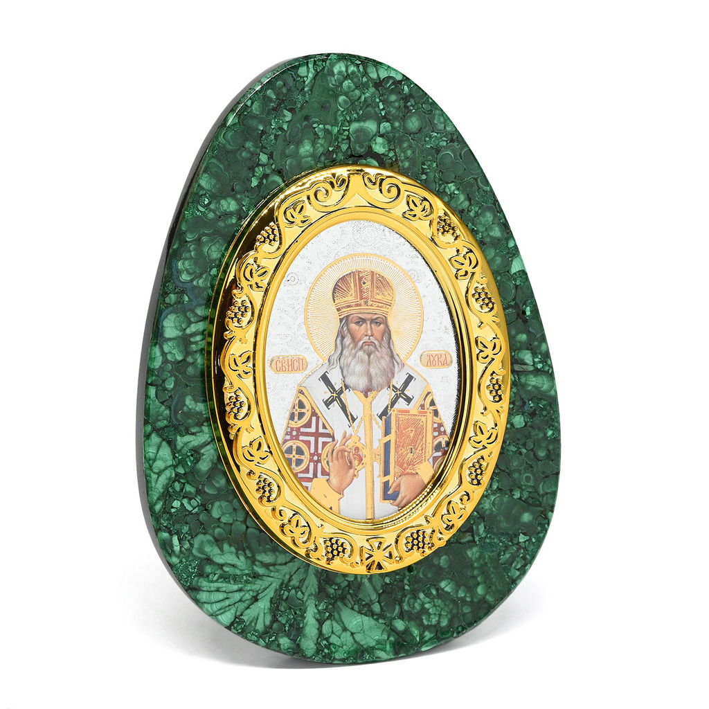 Икона из малахита яйцо "Лука" 80*30*110ммИкона из малахита яйцо "Лука" 80*30*110мм