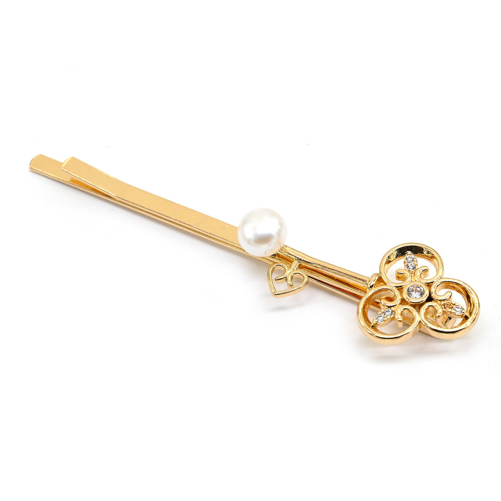 Материал: Жемчуг Натуральность: Натуральный жемчуг Месторождение: Китай •Габариты заколки 15*64мм ± 1мм. •Заколка невидимка для волос цвета золота с жемчугом и цирконами в форме ключика.