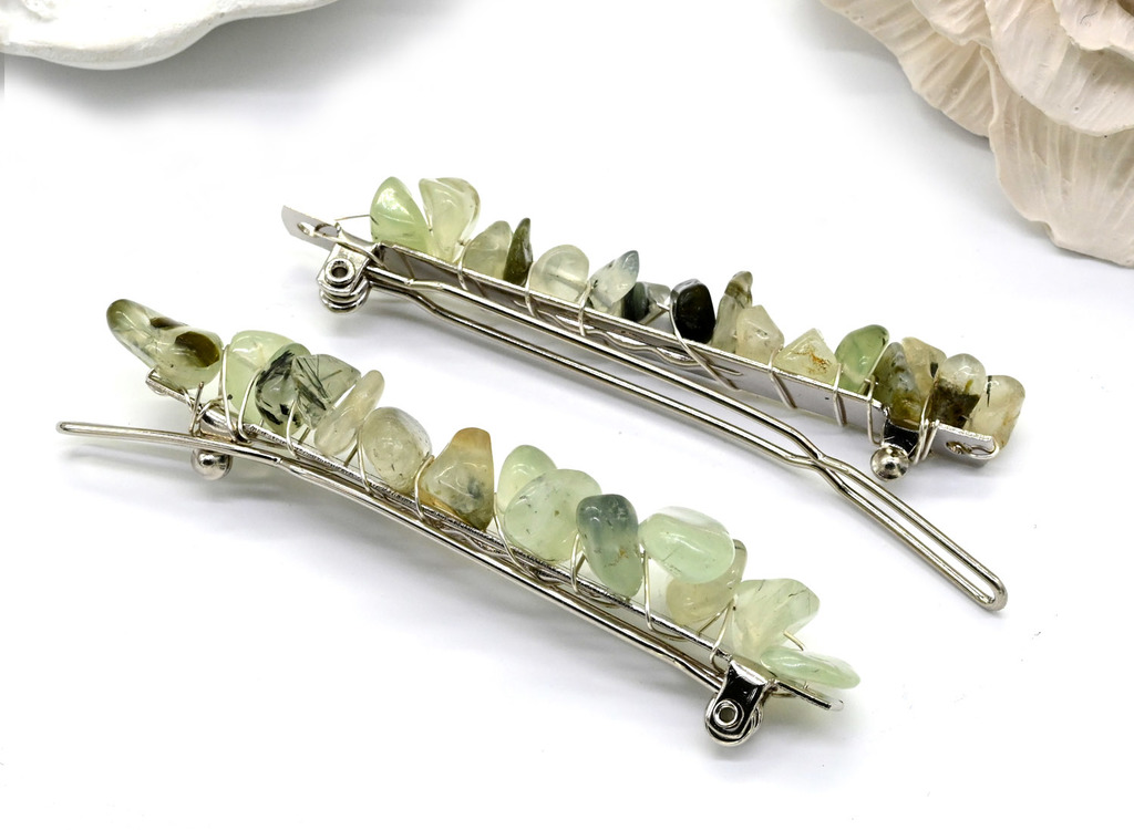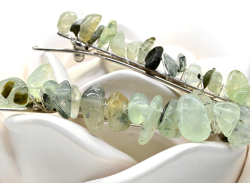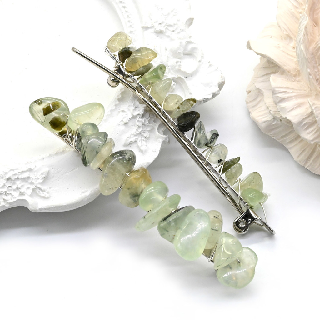 Заколка автомат для волос с натуральным камнем пренитом 6*1,5*1,5смВопросы по товару
